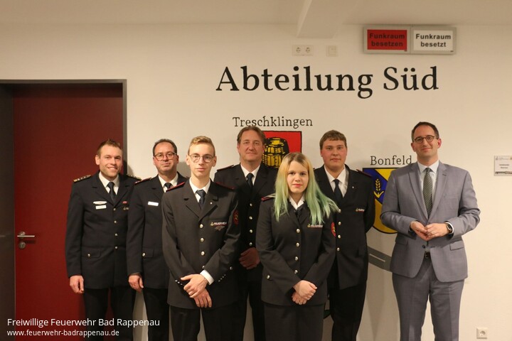 | Am 14.02.2020 fand die vierte Abteilungsversammlung der Abteilung Süd im Feuerwehrhaus der Abteilung statt. Abteilungskommandant Frank Rieth eröffnete den Abend und begrüßte alle anwesenden Gäste sowie die Mitglieder der Einsatzabteilung, Altersmannschaft und Jugendfeuerwehr. In seinem Jahresbericht informierte Abt.-Kdt. Frank Rieth über das Berichtsjahr 2019. Er lobte den Zusammenhalt innerhalb der Mannschaft, berichtete über die Übungen mit dem TRT 7000 für die LKW Rettung, die Einweisungen in das TLF 4000 und die Beschaffung des Lichtmastanhängers. Frank Rieth stellte ebenfalls die neuen Geräteverantwortlichen Fabian Michelbach, Bastian Aras sowie Jasmin Decker vor. Seine Stellvertreter Tobias Mayer und Jürgen Harrer gingen näher auf die Einsätze aus dem Jahr 2019 und die Veranstaltungen ein. Alle kamen zu der Erkenntnis, dass es sich nicht so anfühlt, als ob man erst seit 08.12.2018 in dem neuen Feuerwehrhaus sei, denn es fühle sich allen schon ganz normal an. Die drei ursprünglichen Abteilungen Bonfeld, Fürfeld und Treschklingen sind in allen Bereich schon gut verschmolzen. Man habe schon so viel gemeinsam erlebt und bewegt und somit belebt eine starke Kameradschaft das Feuerwehrhaus der Abt. SÜD. In Vertretung für Kassiererin Carolin Wagenbach trug Mathias Borth den Kassenbericht über die Kameradschaftskasse vor. Nach dem Bericht der Kassenprüfer konnte die Kasse von allen anwesenden Mitgliedern der Einsatzabteilung einstimmig entlastet werden. Jana Tiedt in Funktion als Jugendgruppenleiterin der Abt. Süd und als Ressortleiterin des Ressorts Süd der Jugendfeuerwehr Bad Rappenau erklärte, wie die Umstrukturierung in der Jugendfeuerwehr abgelaufen ist und berichtete von den ersten gemeinsamen Übungen der Jugendgruppe der Abt. Babstadt und der Abt. SÜD , die nun gemeinsam das Ressort Süd bilden. Der stellvertretende Jugendgruppenleiter der Abt. Süd, Patrick Söhner, überreichte außerdem Luca Mayer einen Pokal für sein Engagement in der Jugendefeuerwehr, da er ohne Fehltage bei Übungen, Ausflügen und Veranstaltungen der Jugendfeuerwehr stets präsent war. Aufgrund von Abwesenheit von Helmut Schön, trägt Frank Rieth den Bericht der Altersmannschaft vor. Die Altersmannschaft trifft sich monatlich im Feuerwehrhaus und zu weiteren kameradschaftlichen Terminen z.B. zusätzlichen Besenbesuchen. Unter dem Tagesordnungspunkt Ehrungen konnten wieder einige Feuerwehrkameraden geehrt werden. Besonders hervorzuheben sind hier Klaus Ehmann und Werner Fritz, die das Feuerwehr-Ehrenzeichen Gold in besonderer Ausführung für 50 Jahre aktive Mitgliedschaft erhalten werden. Beide sind 1968 mit 14 Jahren in die Jugendfeuerwehr Bonfeld eingetreten. Zu diesem Zeitpunkt war die Gemeinde Bonfeld noch selbstständig und gründete die 3. Jugendfeuerwehr im Landkreis Heilbronn überhaupt. Des Weiteren wurden Abteilungsintern geehrt, Mathias Borth, Christoph Pyka, Roland Borth und Edgar Lilli. Die offizielle Ehrung mit der Überreichung von Urkunde und Ansteckabzeichen erfolgt bei der Jahreshauptversammlung der Feuerwehr Bad Rappenau am 07.03.2020 in Babstadt. Im Rahmen der Abteilungsversammlung konnten ebenfalls Dominik Braun, Monique Lilli, André Meisenhelder, Christian Reinhardt, Mathias Borth und Tobias Schuch befördert werden. Jasmin Decker, Paul Hetzel, Stefan Reinhardt, Valerie Reiz und Daniel Kaus wurden durch Handschlag in die Einsatzabteilung verpflichtet. Werner Hagner und Walter Maisch wurden in die Altersmannschaft übernommen. In seinen Grußworten bedankt sich Oberbürgermeister Sebastian Frei, im Namen von Gemeinderat und Stadtverwaltung, für die geleisteten Dienst- + Einsatzbereitschaft und betont, dass man den Zusammenhalt der Abteilung sehr spüre. Er hebt die Jugend und die Jugendarbeit hervor und lobt deren Strukturen. Sebastian Frei freut sich stets hier bei der Abteilung Süd zu sein und ist stolz, dass die Feuerwehr Bad Rappenau Abteilung Süd so gut aufgestellt ist. Timo Reinhardt hebt in seinen Grußworten zusätzlich hervor, dass solch ein Engagement, wie es in der Freiwilligen Feuerwehr gefordert wird, leider nicht mehr selbstverständlich ist und bedankt sich bei allen Mitgliedern für Ihren Einsatz. Kommandant Felix Mann betont, dass das Knowhow, die Jugendarbeit und der Zusammenhalt der Abt. Süd top sein. Er merkt an, dass die Strukturen der Abt. Süd Vorbild für andere Feuerwehren in Land Baden Württemberg sind. Felix Mann berichtete außerdem über anstehende Fahrzeugbeschaffungen in der Feuerwehr Bad Rappenau und dass auch die Abteilung Süd berücksichtigt wird, damit diese auch für zukünftige Einsätze gut gewappnet bleibt. Er dankte an dieser Stelle auch dem Gemeinderat für die stets gute Zusammenarbeit und das immer offene Ohr für die Belange der Feuerwehr. Außerdem dankte Felix Mann natürlich allen Mitgliedern der Abt. SÜD für Ihren Einsatz zur Sicherheit unserer Mitbürgerinnen und Mitbürger sowie zum Wohl der Gemeinde und verweist ebenfalls auf die noch kommende JHV in Babstadt. Mit einem herzlichen Dank an alle Gäste und den Mitgliedern der Abteilung Süd einschließlich deren Angehörigen schloss Frank Rieth die Abteilungsversammlung. |