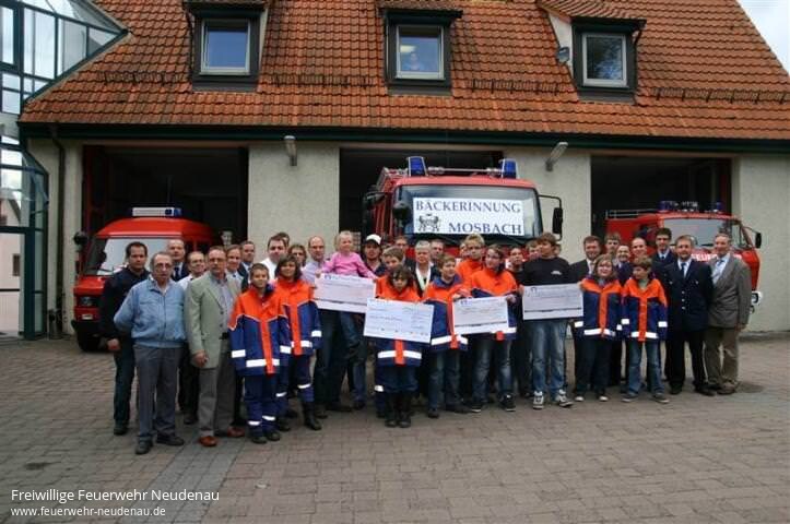 | Eine großzügige Spende konnte die Jugendfeuerwehr Neudenau Anfang August von der Bäckerei Hopfhauer (Herbolzheim) entgegennehmen. Hans-Dieter Hopfhauer und sein Team hatten sich nämlich an einer Aktion der Bäckerinnung Mosbach beteiligt. In allen teilnehmenden Bäckereien wurde über einen bestimmten Zeitraum das sogenannte Floriansbrot verkauft. Ein gewisser Anteil aus den Einnahmen durch dieses Brot wurde dann der am Ort ansässigen Jugendfeuerwehr gespendet. Anfang August durfte dann der stellvertretende Jugendfeuerwehrwart Uwe Amann im Auftrag der Jugendabteilung die dreistellige Spende bei der feierlichen Übergabe im Feuerwehrgerätehaus Dallau von Hans-Dieter Hopfhauer entgegen nehmen. Das Geld kommt in die Kameradschaftskasse und wird intern sicherlich gut zu gebrauchen sein. Die Jugendfeuerwehr bedankt sich an dieser Stelle nochmals recht herzlich bei der Bäckerei Hopfhauer aus Herbolzheim. |