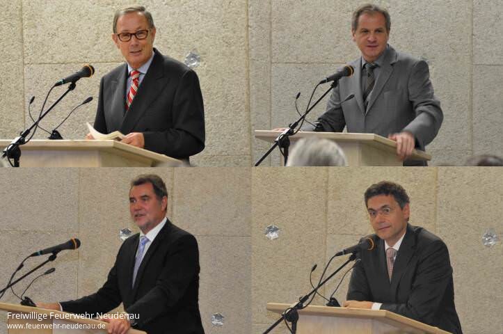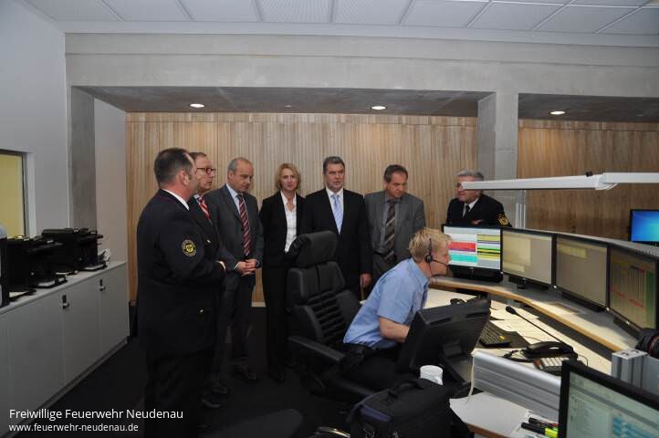 | Nachdem die Integrierte Leitstelle (ILS) von Feuerwehr und Rettungsdienst am Nikolaustag ihren Betrieb aufgenommen hatte, erfolgte heute die offizielle Einweihung. Heilbronns Oberbürgermeister Himmelsbach durfte neben Baden-Württembergs Innenminister Reinhold Gall, den Landesbranddirektor Hermann Schröder, den Vorsitzenden des Landesfeuerwehrverbandes Dr. Frank Knödler, Harald Schugt und Ludwig Landzettel vom DRK, den Chef der Polizeidirektion Heilbronn Roland Eisele, eine große Zahl Stadträte aus Heilbronn und Abgeordnete des Kreistags sowie stattliche Abordnungen der Feuerwehren, des Rettungsdienstes und der weiteren Hilfsorganisationen willkommen heißen. Nachdem im Juli letzten Jahres der Spatenstich erfolgte, haben alle am Bau beteiligten professionell am gesetzten Ziel, Fertigstellung Ende 2011, gearbeitet, so Himmelsbach. Es ist die insgesamt dritte Integrierte Leitstelle im Land, die gemeinsam von einem Stadt- und Landkreis betrieben wird. Durch diese Vernetzung aller Hilfsorganisation im Stadt- und Landkreis ergibt sich für die hier lebenden Bürger im Notfall eine deutliche Verbesserung. 4.25 Mio Euro wurden dazu von den beteiligten Partner, Stadt Heilbronn, Landkreis Heilbronn und Rotes Kreuz eingesetzt. In diesem Betrag enthalten ist auch ein Landeszuschuss von 1 Mio Euro. Innenminister Reihold Gall nannte die neue Leitstelle ein sehr gutes Ergebnis einer langen Planung. Da in Verbindung mit der neuen Technik auch die Alarm- und Ausrückordnung (AAO) komplett überarbeitet wurde, ist jetzt sichergestellt, dass im gesamten Zuständigkeitsbereich der Leitstelle die Bürger für den gleichen Notfall auch identische Hilfe bekommen. Kompetenzen können jetzt gebündelt und Synergien geknüpft werden, so Gall. Er lobte auch die Entscheidung für den Standort direkt neben der Heilbronner Hauptfeuerwache. Kann doch jetzt bei Großschadenslagen das Personal sehr schnell durch erfahren Beamte der Berufsfeuerwehr Heilbronn aufgestockt werden. Landrat Detlef Piepenburg hob noch einmal den Zeitgewinn für die Hilfeersuchenden hervor. Er wünscht sich, dass die Disponenten von Feuerwehr und Rettungsdienst schnell ein homogenes Team werden. Architekt Franz-Josef Mattes stelle den Bau vor. Im Erdgeschoss befindet sich eine Fahrzeughalle mit zwölf Stellplätzen, die ausschließlich von der Feuerwehr Heilbronn genutzt wird. Die Leitstelle im Obergeschoss umfasst neben dem eigentlichen Disponentenraum auch Besprechungsräume, diverse Büros und Sozialräume. Mattes hob abschließend die hervorragende Zusammenarbeit mit Feuerwehr, Rettungsdienst und dem Hochbauamt der Stadt Heilbronn hervor. |
