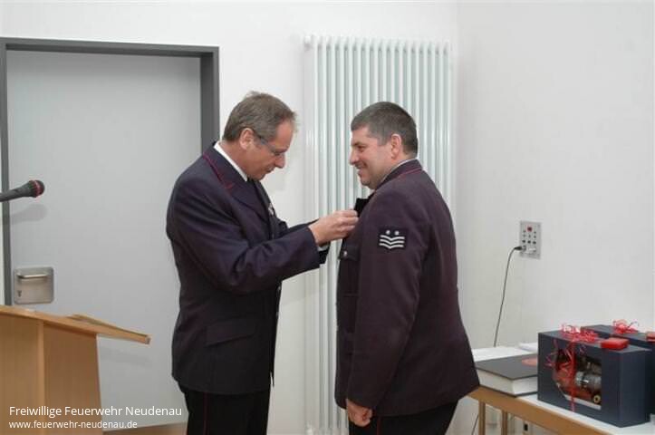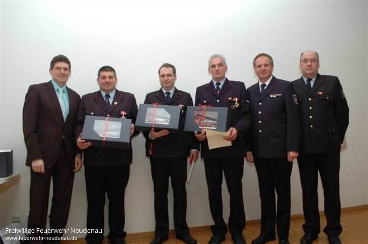 | Dass selbst ein Kommandant, der seit 16 Jahren die Führung einer schlagkräftigen Feuerwehr inne hat, aus der Ruhe gebracht werden kann, zeigte Jörg Wagner aus Neudenau am Wochenende. Zur Ehrung seiner 25jährigen Tätigkeit in der Neudenauer Feuerwehr, davon die besagten 16 als Kommandant, sowie für seine besonderen Verdienste in dieser Position erschien spontanerweise der baden-württembergische Innenminister Reinhold Gall. Während der Hauptversammlung der Freiwilligen Feuerwehr Neudenau ehrte er den Kommandanten sowie weitere Mitglieder für 25- beziehungsweise 40-jährige aktive Einsatzbereitschaft mit den entsprechenden Verdienstorden des Landes: Richard Poppe aus Reichertshausen (40 Jahre), Martin Eckert (Herbolzheim), Michael Schimpl (Neudenau) sowie Joachim Wagenblast aus Herbolzheim für jeweils 25 Jahre. Auch mit weiterem Lob sparte Gall nicht. Dass die Neudenauer Wehr eine der einzigen im Landkreis mit einer aktiven Sportgruppe sei, empfindet er als äußert lobenswert. Die Fitness sei in jedem Einsatz, vor allem aber auch bei den größeren, von hoher Bedeutung. Sehr erfreut zeigte sich auch Kreisbrandmeister Uwe Vogel über den hohen Ausbildungs- und Ausrüstungsstand der Neudenauer Kameradinnen und Kameraden, die sich in der Sturmfeder-Halle hoch über Neudenau zusammengefunden hatten. Er informierte weiter über die Neuerungen im Landkreis Heilbronn, wie die Umstellungen aus dem vergangenen Jahr auf die digitale Alarmierung sowie die Inbetriebnahme der Integrierten Leitstelle Heilbronn. Außerdem wies er nochmals darauf hin, dass in diesem Jahr alle digitalen Meldeempfänger des Landkreises nochmals neu programmiert werden müssten, sobald der neue Einsatzleitrechner in der Leitstelle in Betrieb genommen wird. Die Floriansjünger hatten im vergangenen Jahr viel zu tun. 21 Einsätze, davon ein Großbrand in der Neudenauer Altstadt, wo schlimmeres verhindert werden konnte, sowie eine Großzahl an Übungen und sonstigen Aktivitäten forderten das Engagement der Einsatzkräfte. Dass auch die Nachwuchsarbeit einen hohen Stellenwert in der Stadt einnimmt, konnte der Jugendfeuerwehrwart Daniel Beck verdeutlichen. In den nächsten Monaten soll eine Kinderfeuerwehr die Attraktivität der Wehr noch mehr steigern, dann können Kinder ab sechs Jahren in die Feuerwehr eintreten. Dies sei auch nötig, im genügend Nachwuchs für die Zukunft heranziehen zu können. Da sind sich Kreisbrandmeister Vogel, Innenminister Gall sowie der Neudenauer Bürgermeister Manfred Hebeiß einig. Eine positive Tatsache war die Übernahme von fünf Mitgliedern aus der Jugendfeuerwehr in die Einsatzabteilungen: Marc Dörflinger zur EA Siglingen, Fabian Kreß, Michael Schwarz und Martin Röser zur EA Herbolzheim, sowie Marcel Holder zu EA Neudenau. Diese hohe Übernahmezahl ist wichtig für die Einsatzbereitschaft der Wehr und zeigt die besondere Bedeutung der Jugendförderung in der Jugendfeuerwehr Neudenau. In einem wahren Wahlmarathon wurde anschließend Jörg Wagner, der nun die Ehrennadel des Kreisfeuerwehrverbandes am Jackett tragen durfte, mit großer Mehrheit für weitere fünf Jahre gewählt, ebenso sein Stellvertreter Franz Menstell aus Herbolzheim. Weiter wurden die Mitglieder des Feuerwehrausschusses (Matthias Bauer, Alexander Kreß und Michael Poppe) sowie die Kassenprüfer (Roland Schönleber und Helmut Reinhart) aus den Reihen der Brandbekämpfer gewählt. Bürgermeister Hebeiß lobte in hohem Maße die Tätigkeit der Floriansjünger im vergangenen Jahr. Besonders erwähnenswert empfand er die Tatsache, dass sich nach dem Großbrand in der Altstadt viele Mitbürgerinnen und Mitbürger bei ihm mit lobenden Worten eingefunden hatten, um die Arbeit der Freiwilligen Feuerwehr wertzuschätzen. Selbst ehemalige Kritiker konnten so von der Arbeit überzeugt werden. Dass in den nächsten Monaten und Jahren die Erweiterung des Feuerwehrhauses aussteht, sei eine gute Sache. Lobenswert sei auch die positive Zusammenarbeit der einzelnen Hilfsorganisationen innerhalb als auch außerhalb der Stadtgrenzen im Rahmen der Gefahrenabwehr. Mit Erinnerungen an das Jahrhunderthochwasser im Dezember 1993, von dem ein Video über die Arbeit der Neudenauer Wehr aufgetaucht war und gezeigt wurde, schloss die Hauptversammlung. |