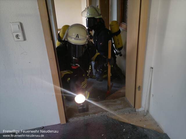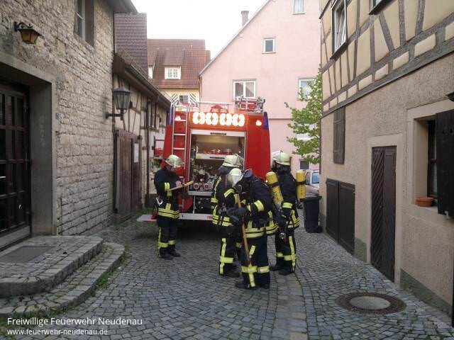 | Optimale Übungsbedingungen bieten uns derzeit Objekte im Altstadtbereich, welche im Besitz der Stadt sind. So fand kürzlich eine Übung im Objekt Keltergasse 5 statt. Dabei musste ein Trupp unter Atemschutz zur Personensuche ins zweite Obergeschoss vor. Raum für Raum wurde nach der vermissten Person abgesucht. Um das Szenario für die beiden Kameraden so realistisch wie möglich zu gestalten, bekamen beide über ihre Atemschutzmaske so genannte Simulationsschilder. Die Sicht wird dadurch so beeinträchtigt, als wäre man in einem verrauchten Gebäude. Diesmal fand der Atemschutztrupp keinen Verletzten. Die vermisste Person kam im Laufe der Übung vom „Einkaufen“ zurück und war bei dem „Brand“ gar nicht zuhause. Parallel baute die Besatzung des Gerätewagen eine Wasserförderung von der Jagst auf, damit genügend Löschwasser an der Einsatzstelle zur Verfügung stand. Wer Interesse an der Feuerwehr hat, darf uns gerne mal an einem Übungsabend besuchen! |
