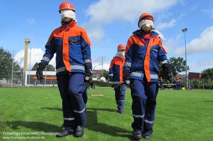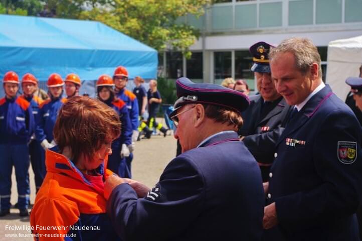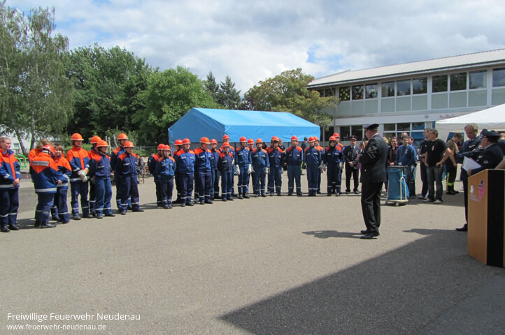 | Elf Mannschaften aus fünf Jugendfeuerwehren des Landkreises Heilbronn haben am Samstag erfolgreich die Abnahme der Jugendflamme Stufe 2 bestanden. Überreicht wurden die Abzeichen von Kreisfeuerwehrverbandsvorsitzenden und Innenminister Reinhold Gall, Kreisbrandmeister Uwe Vogel, Kreisjugendfeuerwehrwart Knut Steinbauer und dem leitenden Schiedsrichter Franz Rittenauer. Unisono verwießen diese darauf bei der Stange zu bleiben und nach Möglichkeit in den nächsten Jahren bei der Einsatzabteilung die Abzeichen zu erreichen - abgenommen wurde die Jugendflamme wie in den Jahren zuvor parallel zu den Leistungsabzeichen der Einsatzabteilungen. Dabei waren: - Bad Rappenau-Bonfeld (3 Mannschaften)