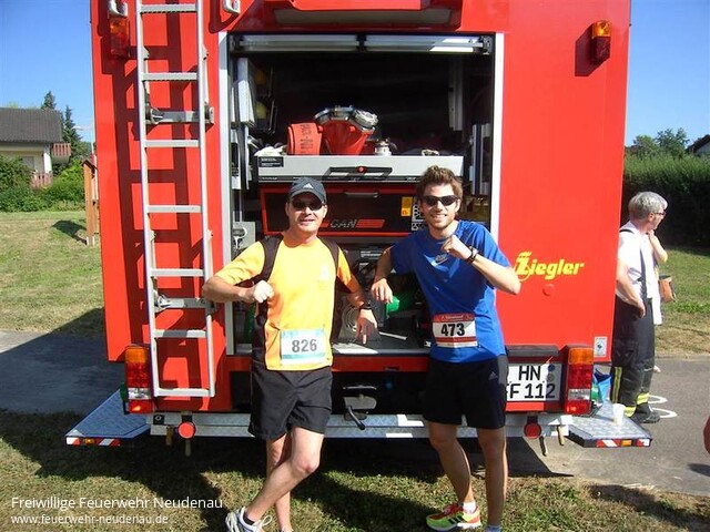 | Auch beim Herbolzheimer Gänslauf 2013 waren einige erfolgreiche Teilnehmer des Teams "Feuerwehr Neudenau" am Start. Beim Hauptlauf (10km) gingen 4 Herren für das Team Feuerwehr an den Start: Daniel Beck, Andreas Zucker, Hansi Ziern und unser Bürgermeister Manfred Hebeiß. Beim 5-km-Jagstlauf waren es zwei Feuerwehrmitglieder: Robert Tomschitz und Uwe Amann. In den vergangenen drei Jahren hatte die Feuerwehr ja nie ein Problem, den begehrten Wanderpokal für das größte Team mit nach Hause zu nehmen. Dieses Jahr konnten man um diese Wertung nicht mitlaufen. Dennoch war das Ereignis für viel mehr Feuerwehrkameradinnen und -kameraden ein Pflichttermin. So mussten von den Einsatzabteilungen aus Neudenau und Herbolzheim Streckenposten rund um die Strecke gestellt werden. |
