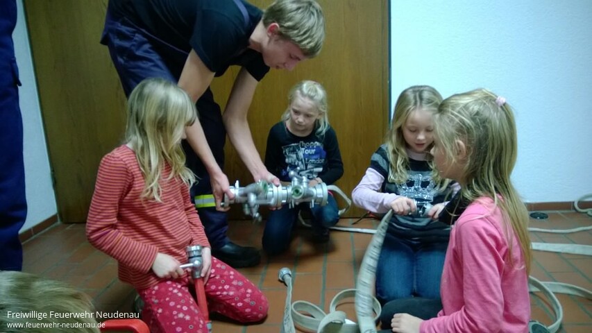 | Nach einem Jahr kann sich die Bilanz der „Kindergruppe in der Jugendfeuerwehr“ Neudenau, wie die Einheit offiziell heißt, durchaus sehen lassen. Elf Kinder befinden sich im Moment in der Obhut des Betreuerteams um Carolin Bauer. In diesem Jahr konnten, nach den Sommerferien, bereits zwei der Kinder die Kindergruppe in Richtung Jugendfeuerwehr verlassen, weil sie die Altergrenze von zehn Jahren erreicht hatten. Die vergangenen zwölf Monate wurde durch einige Aktivitäten mit den Kindern gestaltet. Höhepunkte waren der Besuch des Erlebnisparks Tripsdrill zusammen mit der Jugendfeuerwehr Außerdem besuchten die Kinder die Ausstellung „s`brennt“ im Neckarsulmer Stadtmuseum. Alle zwei Wochen fand ein Übungsdienst statt. es wurde gefunkt, Feuerwehrtechnik erklärt und ausprobiert, aber auch gespielt, gebacken und erzählt. Zum ersten Geburtstagsfest gab es Spiele ohne Grenzen rund um die Feuerwehr. In Zweierteams wurde das bisher vermittelte Wissen in einem Quiz abgefragt. Am Ende reichte die Zeit gerade noch um die Muffins zu essen und etwas zu trinken. |