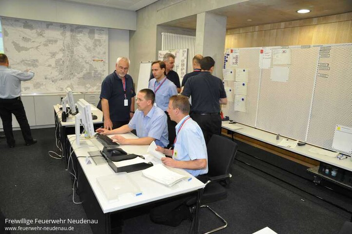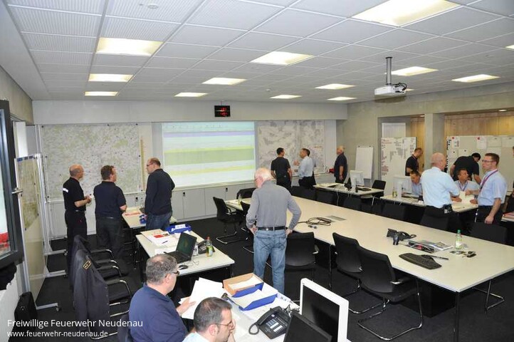 | Am Samstag Vormittag wurde eine unwetterbedingte Großschadenslage im gesamten Stadt- und Landkreis Heilbronn geprobt. Ziel der Übung war zum einen das Unwettermodul des Leitrechners der Integrierten Leitstelle (ILS) auf Herz und Nieren zu prüfen, die Leistelle selbst einem Stresstest zu unterziehen und die Kommunikationswege sowohl zwischen der ILS und den Führungshäuser der Feuerwehren als auch zwischen den Führungshäusern und den im Einsatz befindlichen Kräften zu testen. Der Heilbronner Feuerwehrkommandant Eberhard Jochim betonte vor der Übung, dass solche Ereignisse nur gemeinsam durch Stadt- und Landkreis bewältigt werden können. Entsprechend war der Führungsraum auch mit Personal aus beiden Bereichen besetzt. Um einem Realfall möglichst nah zu kommen, erfolgten 150 Notrufe über die „112“ aus den Ortsnetzen von Gemmingen, Schwaigern, Kirchhausen und Bad Rappenau, die innerhalb von 20 Minuten eingingen. Diese wurde von 22 zuvor definierten Anrufern ausgeführt. Da die Rufnummern dieser Personen zuvor im Leitrechner hinterlegt wurden, war sichergestellt, dass in diesem Zeitraum eingehende echte Notrufe sofort herausgefiltert und mit Vorrang bearbeitet werden konnten. Nach dem Übungsstart kümmerten sich zwei Disponenten ausschließlich um solche Notrufe. Im Verlauf der Übung waren dies dann letztendlich 16 Rettungsdienst- und drei Feuerwehreinsätze sowie diverse Krankentransporte. Bei entsprechenden Lagen kommt in der ILS das sogenannte „Umwettermodul“ zur Anwendung, welches die Einsatzaufträge an die Feuerwehren nach erfolgter Notrufabfrage automatisch per Fax versendet. Die betroffenen Wehren erhalten einen Erstalarm, alle Einsatzaufträge werden danach nur noch per Fax übermittelt. Jede Gemeindefeuerwehr hat ein definiertes Führungshaus. Dieses ist in aller Regel das Feuerwehrhaus der Kerngemeinde. Von dort aus koordiniert ein örtlicher Führungsstab die eingehenden Einsätze selbstständig und teilt diese dann seinen Abteilungen bzw. den verfügbaren Einheiten zu. Bei der Übung wurde davon ausgegangen, dass es sich um ein durch entsprechende Unwetterwarnungen des Wetterdienstes absehbares Ereignis handelt. D.h. es war ausreichend Vorlauf, in diesem Fall 30 Minuten, um sowohl die örtlichen Führungshäuser als auch den Führungsstab in der ILS zu besetzen. Ebenso wurde das Leistellenpersonal hochgefahren, so dass alle Notrufannahmeplätze besetzt waren. Ab 9 Uhr gingen die ersten Notrufe aus Gemmingen ein. Kurze Zeit späten kamen dann die Notrufe aus Schwaigern, dann zog des Unwetter in Richtung Kirchhausen und Bad Rappenau, was dazu führte, dass mit etwas Verzögerung schließlich auch Anrufe aus diesen beiden Ortsnetzen eingingen. Ab 9:20 Uhr wurden weitere rund 300 Einsätze manuell erfasst und allen übrigen Landkreiswehren zugeteilt. Letztendlich wurden aus diesen knapp 500 Notrufen etwa 1.000 Einsätze. Wie in der Realität bei solchen Ereignissen, wurden die örtlichen Feuerwehren von geschädigten Bürgern auch direkt angefordert oder eine z.B. zum Auspumpen eines Kellers eingesetzte Einheit wird von einem Nachbar informiert, dass auch dort der Keller unter Wasser steht. Nach dem Übungsende um 12 Uhr konnte bereits ein erstes Fazit gezogen werden. Adrian Mehler, zuständiger Dezernent im Landratsamt Heilbronn hob vor allem den Lerneffekt in der Leitstelle und in den Führungshäusern hervor. Kreisbrandmeister Uwe Vogel stellte fest, dass sich das Konzept bewährt hat. Natürlich wurden auch Schwachstellen erkannt. So muss der Faxversand der Alarmdepeschen an die Führungshäuser verbessert werden. Auch bei den Abläufen im Führungsraum gab es Erkenntnisse über möglich Optimierungen. Im Laufe der kommenden Woche müssen die Protokolle der 22 Notrufer ausgewertet werden, um Erkenntnisse über die Erreichbarkeit der Leistelle bei einer solchen Extremsituation zu bekommen. Die Zusammenarbeit der beiden Führungsstäbe aus dem Stadt- und Landkreis im Führungsraum hat sich bestens bewährt. Fotos: Feuerwehr Heilbronn |