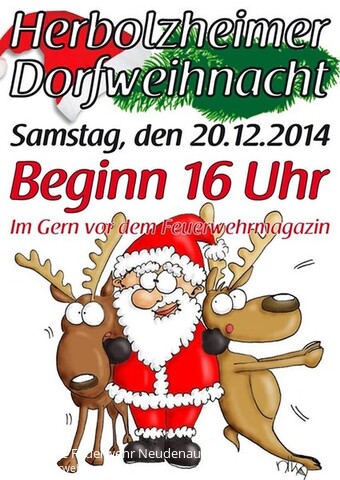 | Am morgigen Samstag sind wir auf der Herbolzheimer Dorfweihnacht vertreten. Wir haben Infomaterial über Rauchmelder (Pflicht ab 01.01.2015), Umgang mit Feuerlöschern, Brandschutz im Haushalt und unseren Jubiläumskalender dabei. Ab 16.00 Uhr im Feuerwehrhaus Herbolzheim! |