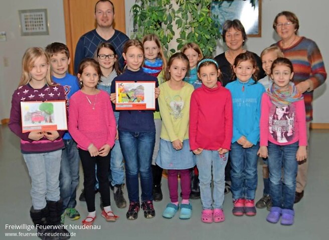 | Ein stolzes Jubiläumsjahr begeht die Freiwillige Feuerwehr Neudenau heuer. Vor 150 Jahren wurde im Gasthaus Lamm eine Feuerwehr gegründet und aufgestellt. Dieses stolze Jubiläum feiert man mit mehreren Veranstaltungen und in würdiger Weise. Einen ganz besonderen Beitrag dazu lieferten 92 Schülerinnen und Schüler aus allen Klassen der Kurmainz-Schule, die an zwei Nachmittagen kleine Kunstwerke für einen Kalender schufen. Szenenbilder Es war der Wunsch der Blauröcke, den Nachwuchs für die Gestaltung eines Jubiläumskalenders zu gewinnen. Adelheid Fuchs ist Lehrerin an der Schule und unter anderem auch für die Kunst zuständig: „Unsere 92 kleinen Künstlerinnen und Künstler waren mit “Feuereifer„ dabei und malten tolle Szenenbilder zum Thema Feuerwehr und Rettungswesen“, sagte sie. Klar war aber, dass aus den 92 Werken lediglich zwölf für den Kalender ausgewählt werden konnten und diese Auswahl übernahm eine vierköpfige Jury mit den Lehrerinnen Anita Brechter, Adelheid Fuchs und zudem Alexandra Reinhardt sowie Uwe Amann von der Feuerwehr. Wie Anita Brechter informierte, sollen auch die nicht gedruckten Werke im Rahmen einer Ausstellung zum Thema 150 Jahre Feuerwehr im Josefine-Weihrauch-Museum ausgestellt werden. Die Auswahl fiel der Jury nicht leicht und daher versuchten sie verschiedene Themenbereiche auszuwählen und achteten auf Techniken und Farbe. Erstaunlich wie informiert sich die Schüler vom Aufgabenspektrum der Feuerwehr zeigten. Das Januarblatt gestaltete Hannah Haiml und malte ein brennendes Haus aus dessen Dachluke eine Frau mit ihrer Katze auf Rettung wartet, die bereits mit einer Drehleiter naht. In den meisten Bildern kommt auch die wichtige Notrufnummer 112 vor, so bei Lea Schmidbauer, die das Februarblatt malte. Feuerwehrmann Uwe Amann freute sich über die Kenntnis der Nummer besonders. Die Beseitigung von Ölspuren stellte Tim Jung eindrucksvoll für den März dar und Lara Hoyer zeigt im April die Rettungen einer Katze von einem Baum. Im Mai stellt Valerie Volkert vor, wie ein Hubschrauber einen Waldbrand bekämpft und Thea Vogt bildete im Juni eine klassische Brandbekämpfung eines Hauses ab. Auf dem Juliblatt zeigt Martin Kratzmüller, wie die Feuerwehr mit dem Kran ein Auto aus einem Gewässer hievt. Eine weitere Tierrettung von einem Baum malte Martyna Jerc für den August und Majlin Schlamann im September einen Hochwassereinsatz vor. Im Oktober lässt Sarah Froschauer die Wehr erneut eine Katze vom Baum holen und bei Sophia Mölle wird im November ein brennendes Haus gelöscht. Mit acht Mann lässt Janine Berger die Wehr anrücken, um auf dem Dezemberblatt eine Katze vom Baum zu holen. Der Kalender ist für fünf Euro bei der Raiffeisenbank Neudenau, beim Kaufhaus Brechter am Marktplatz, bei der Apotheke und im Rathaus Neudenau erhältlich. Bild: Zwölf kleine Künstler der Kurmainz-Schule malten die Bilder zum 150-jährigen Bestehen der Neudenauer Feuerwehr. (Foto: Rudolf Landauer) |