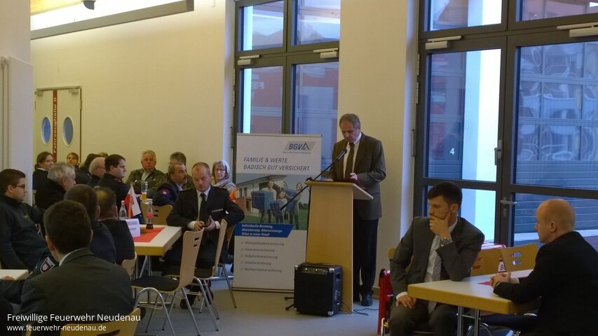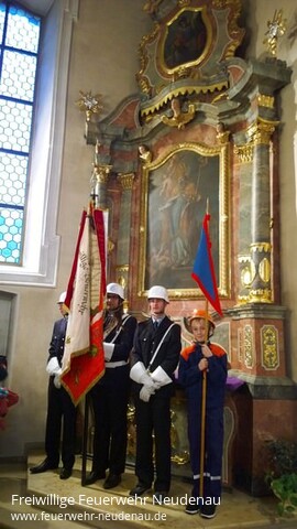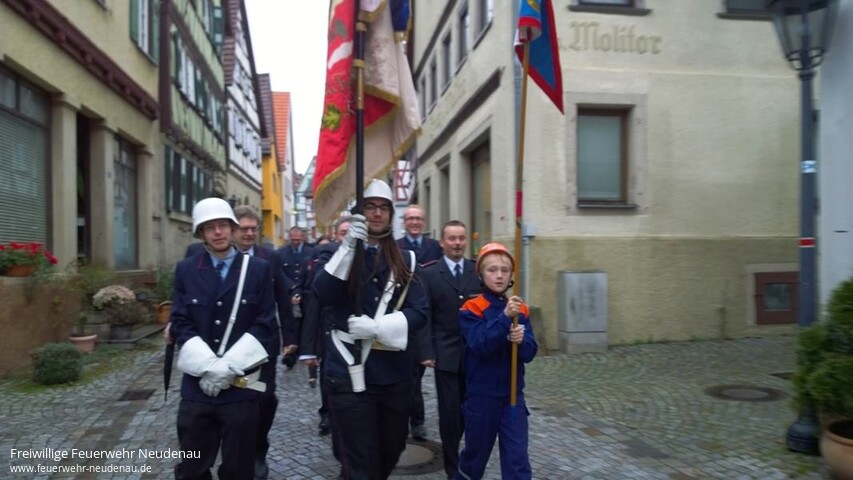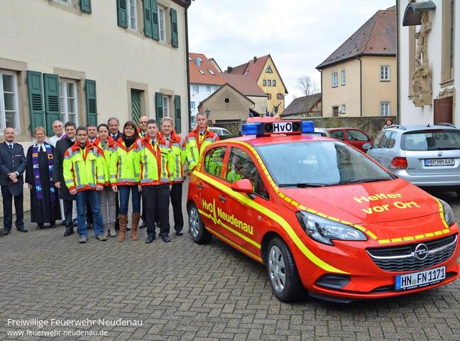 | Neues Fahrzeug für Helfer vor Ort und eine Pumpenspende für 11 000 Euro 150 Jahre nach der offiziellen Gründung der Neudenauer Feuerwehr am 19. November 1865 beendeten die Floriansjünger der Stadt Neudenau gestern ihr umfangreiches Jubiläumsjahr mit einem Festgottesdienst zu Ehren ihres Schutzpatrons St. Florian. In der St. Laurentius Kirche zelebrierten Pfarrerin Susanne Spöhrer und Diakon Helmut Dietrich, flankiert von einer Fahnenabordnung der Feuerwehr am linken Seitenaltar einen eindrucksvollen Gottesdienst. Als Ehrengast nahm auch Reinhold Gall, Innenminister von Baden-Württemberg, an der Feier teil. Den Schutz von gleich drei Heiligen bekamen die Blauröcke im Gottesdienst empfohlen, denn in Neudenau werden neben St. Florian auch noch St. Laurentius und der Schutzpatron der Stadt, St. Michael verehrt. „Danke“ Dieses Wort fiel oft in dem Gottesdienst, in dem Susanne Spöhrer dazu aufforderte, Gott zu danken, dass er der Gemeinschaft Menschen zur Seite stellt, die Hilfe leisten wenn diese benötigt wird. Helmut Dietrich dankte der Feuerwehr für ihre gezeigte Nächstenliebe und wünschte, dass alle stets gesund vom Einsatz zurückkehren mögen. Der Leitspruch der Feuerwehr: „Gott zur Ehr, dem nächsten zur Wehr“, stand im Mittelpunkt der kirchlichen Feier. „Dieser Spruch ist nicht nur ein Zeichen der Volksfrömmigkeit, er ist ein Versprechen“, sagte Eckehard Meckes, der den Gottesdienst mitgestaltete. Spende Nach dem Gottesdienst begab sich die Kirchengemeinde vor die Kirche zu dem wartenden roten Opel Corsa. Die Helfer vor Ort Neudenau (HvO) haben das Einsatzfahrzeug vom Förderverein des HvO gespendet bekommen. Zu der 20 000 Euro Sachspende erhielten sie die Zusage von Reinhold Gall, dass die Landeregierung noch in diesem Jahr die Feuerwehr und die HvO rechtlich besser absichern werde. Gerade die HvO hing rechtlich gesehen in der Luft, denn sie sind von ihrer Anlage her zwischen der Feuerwehr und dem DRK angesiedelt und haben auch die Ausbildungen beider Institutionen absolviert. Mit dem Auto können die Helfer jetzt mit Sondersignal zu einem Unfall fahren und vor Ort helfen. „Das Fahrzeug hat sich seit Juni schon in annähernd 30 Einsätzen bewährt“, sagte Uwe Amann von HvO. Das zweite Geschenk kam vom Badischen Gemeindeversicherungsverband BGV, der die Feuerwehr mit einer Tragkraftspritze im Wert von 11 000 Euro ausstattete. Bürgermeister Ernst Schilling aus Herbolzheim im Breisgau ist im Aufsichtsrat des BGV und hatte sich für die Spende stark gemacht: „Ich hab als Herbolzheimer eh schon mein Herz an Herbolzheim an der Jagst, und damit auch an Neudenau verloren“, bekannte er. Schilling: „Weil die Feuerwehr auch Schäden verhindert, ist diese Spende an der richtigen Adresse“, sagte er. Wertschätzung Reinhold Gall zeigte seine Wertschätzung für die Feuerwehr dadurch, dass er im Jubiläumsjahr bereits sieben Mal in Neudenau weilte. „Was im Ehrenamt geleistet wird, können wir mit staatlichen Mitteln gar nicht leisten,“ sagte er anerkennend. Bild 1: Im Beisein von Innenminister Reinhold Gall (sechster von rechts) segneten Pfarrerin Susanne Spöhrer und Diakon Helmut Dietrich (2.u.3. von links) das Auto. Foto: Landauer Bild 2: Fahnenabordnung in der Kirche Bild 3: Marsch durchs Städtle zum Feuerwehrhaus Bild 4 und 5: Innenminister Gall ehrt die Firma Steer-Hydraulik-Service mit der Auszeichung „Partner der Feuerwehr“ (Bilder 2-5 Feuerwehr) |
