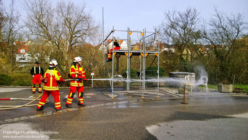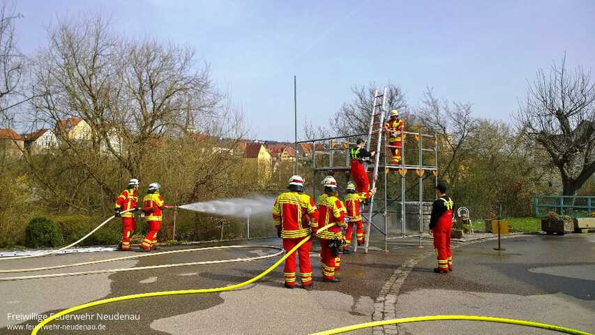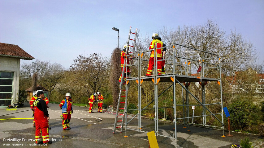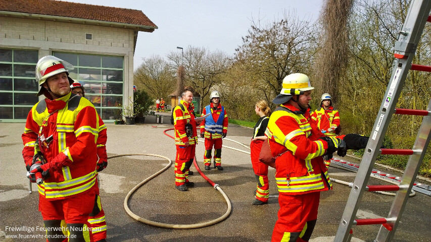 | Aktive aller drei Einsatzabteilungen übten heute erstmals für das Leistungsabzeichen. Ab sofort findet jeden Sonntag eine entsprechende Übung statt. Im weiteren Verlauf werden die Übungen noch auf Termine unter der Woche intensiviert, bis dann im Juli die Abnahme der Leistungsabzeichen in Bad Friedrichshall erfolgt. |