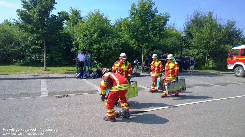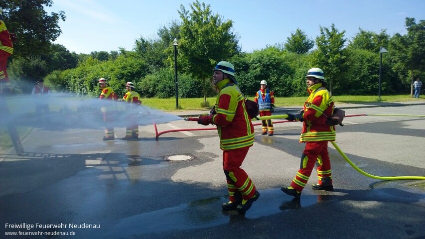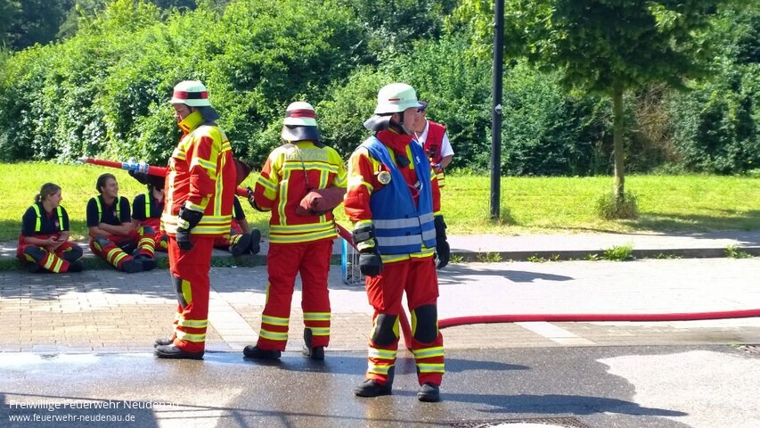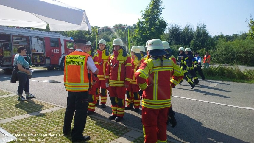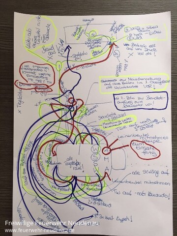 | Drei Gruppen der Feuerwehr Neudenau, mit Angehörigen aller Abteilungen, haben heute das Leistungsabzeichen der Feuerwehr Baden-Württemberg in Bronze errungen. Die Leistungsabnahme fand in Bad Friedrichshall beim Sportpark statt. Die Gruppen wurden geführt von Barbara Wagner, Uwe Amann und Fabian Klotz. In der Vorbereitung waren maßgeblich Matthias Bauer und Alexander Kreß die Coachs. Geübt wurde seit Anfang April, zunächst wöchentlich, sonntags von 09.30 Uhr bis 12.30 Uhr. Zuletzt dann auch das eine und andere mal unter Woche. Super ihr Mädels und Jungs, weiter so! Bild 10: Es gab da wohl einen Plan! |