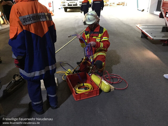 Mit einer „eingeklemmten Person“ hatte es eine Gruppe der Jugendfeuerwehr beim letzten Übungsabend zu tun. Eine andere Gruppe befasste sich mit der Kennzeichung gefährlicher Stoffe und Güter.