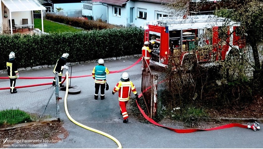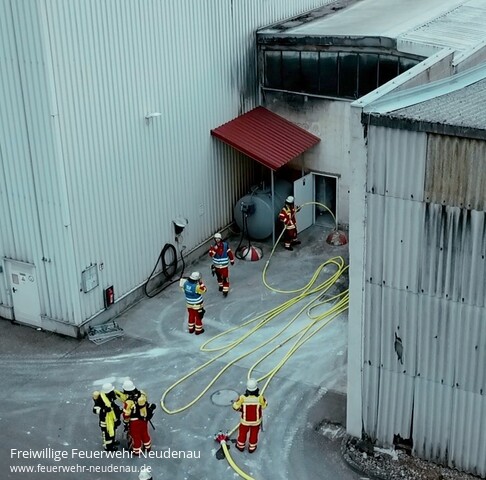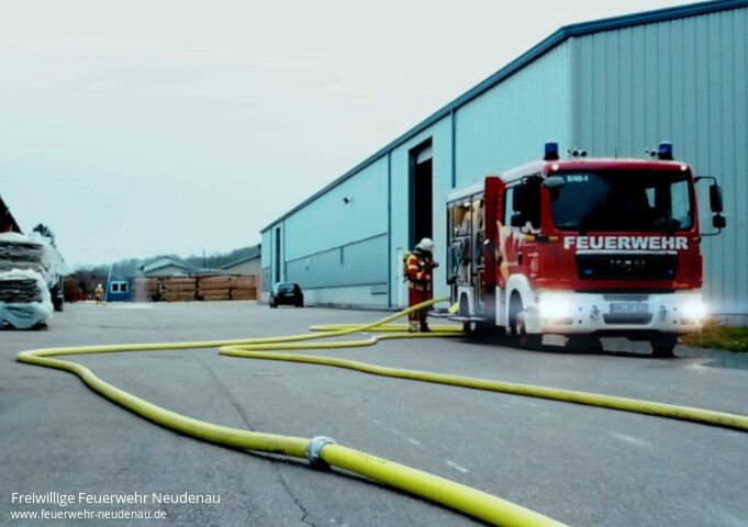 | Die Aufgaben der Feuerwehr sind vielfältig und oft komplex. Das Einsatzstichwort unserer abteilungsübergreifenden Übung am 09.04.2018 auf dem Gelände der Fermacell in Siglingen lautete erst einmal „Brand in Lagerhalle“. Nach Eintreffen des ersten Löschfahrzeugs, dem Staffel-LFaus Siglingen stellte sich heraus, dass sich noch eine Person in der verrauchten Halle befand. Umgehendwurde die Gefahrenstufe erhöht und somit weitere Einsatzkräfte nachalarmiert. Zeitgleich bekam der Angriffstrupp aus dem St-LF den Befehl zur Menschenrettung unter schwerem Atemschutz. Nachdem das Tanklöschfahrzeug mit den Kameraden aus Neudenau eingetroffen ist, wurde die Suche nach der vermissten Person in der Halle mit einem weiteren Trupp aus dem TLF, ausgestattet mit einer Wärmebildkamera, unterstützt. Um dieses Übungsszenario möglichst realitätsnah zu gestalten, wurde die Sicht aller Atemschutzgeräteträger durch verdunkelte Visiere eingeschränkt. Die inzwischen ebenfalls eingetroffenen Löschgruppen Reichertshausen und Kreßbach stellten währenddessen eine vom Trinkwassernetz unabhängige Wasserversorgung her. Dafür wurde sowohl der Löschwasserbehälter auf dem Tekton Gelände als auch die am Jagstufer festinstallierte Pumpe mit zugehöriger Steigleitung genutzt. Nach gut einer Stunde hieß es durch den Übungsleiter „Übungsende“. Die Person in Gestalt einer robusten, lebensgroßen Puppe war gefunden, das Feuer schwarz. Die Herausforderung einer zunächst unübersichtlichen Ausgangslage und die Organisation von vielen Einsatzkräften mit unterschiedlichen Aufgaben verteilt auf ein weitläufiges Gelände verlangte allen Beteiligten Disziplin und Einsatzwille ab. Verschwitz, aber zufrieden mit den Erkenntnissen aus dieser Übung, wurde gemeinsam alles wieder auf den Fahrzeugen verstaut und es ging zum Ausklang ins Feuerwehrhaus Siglingen. Der Übungsablauf wurde freundlicherweise durch die Filmproduktion „filmreif“ (https://www.facebook.com/filmreifvideos/) für spätere Übungszwecke dokumentiert. Zusätzlich wurde ein kurzer Trailer erstellt, den wir euch selbstverständlich nicht vorenthalten wollen. Wir bedanken uns sowohl bei allen Kameraden, die dabei waren, als auch bei den Firmen Fermacell, Tekton und der Filmproduktion filmreif, ohne die diese Übung nicht möglich gewesen wäre. |