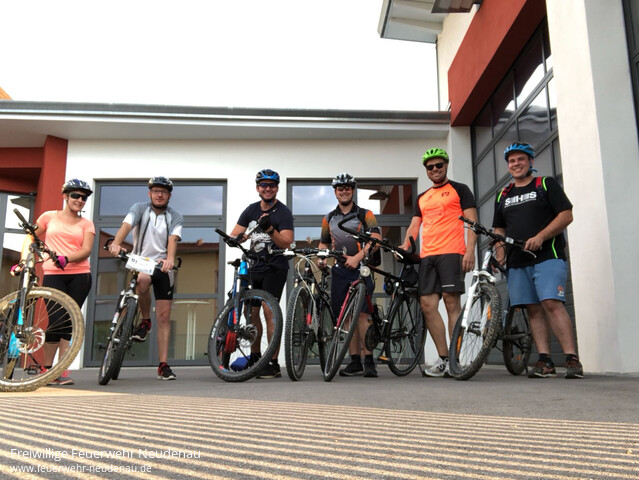 | … daher entschieden sich spontan einige Mitglieder der Sportgruppe der Freiwilligen Feuerwehr Neudenau vergangenen Mittwoch dazu, eine Radtour durch den Neudenauer Wald zu machen. Start war um 19.30 Uhr bei 30° C im Schatten. Der Anstieg in den Stadtwald von etwa 300 Höhenmetern schafften wir ohne Probleme, die ersten 5 Kilometer durch die Wohngebiete und Felder der Stadt waren allerdings schweißtreibend. Im Wald angekommen machten wir eine Runde um den Böcklingsee, um dann über den Grundweg ins Schefflenztal zu gelangen. Von dort aus ging es bis zum „Zigeunerstock“ zwischen Herbolzheim und Untergriesheim und von dort auf dem Radweg zurück zum Neudenauer Feuerwehrhaus. Gute 23 Kilometer rund um Neudenau, eine gute Aktion für die Fitness der Feuerwehrleute ! |