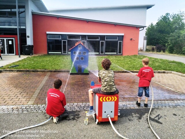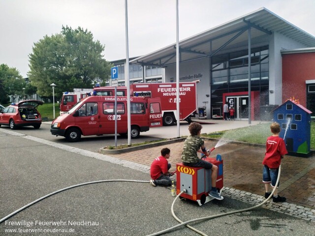 | „Neudenau vereint!“ war das Motto des diesjährigen Schulfestes der Kurmainz-Schule Neudenau. Die Schulleitung war auf örtliche Vereine und Intitutionen zugegangen und hatte diese um Mitwirkung angefragt. Zahlreiche Vereine präsentierten sich in und um das Schulgebäude und die Sturmfeder-Halle, so auch die HvO-Gruppe und die Feuerwehr. Auf dem Vorplatz der Sturmfeder-Halle standen die Fahrzeuge und Gerätschaften der Feuerwehr zur Besichtigung und wurden gerne erklärt. Außerdem hatte die Jugendfeuerwehr das altbewährte „Spritzenhäusle“ aufgebaut, wo es galt die Flammen zu bekämpfen. Eine sehr gelungene Veranstaltung, die das Miteinander in der Stadt fördert. Herzlichen Dank der Kurmainz-Schule für die Möglichkeit! |