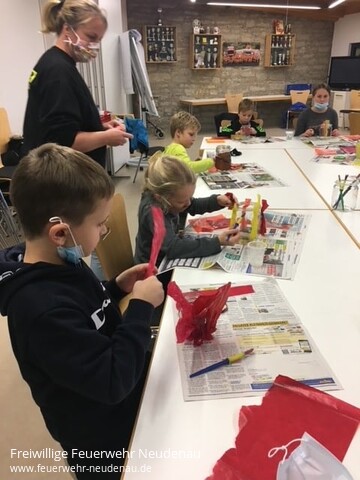 | Was für ein verrücktes Jahr liegt hinter uns. Nachdem wir im letzten Winter schon nach unserer Faschingsparty und der obligatorischen Waldreinigung unsere Übungen, aufgrund der Corona-Pandemie einstellen mussten, war die Freude im Sommer riesig, als wir grünes Licht für weitere Treffen bekamen. Am 25. September war es soweit und wir durften nach über einem halben Jahr endlich wieder zusammenkommen. Ein Hygienekonzept und viele Sonderregeln wurden erstellt. Dank vieler kreativer Ideen konnten wir Termine bis Ende Oktober realisieren. Angepasst an den Rhythmus der Kleingruppen-Übungen der Einsatzabteilung, war es schön alle Kinder wieder sehen und sprechen zu können. Alleine um uns gegenseitig die ganzen Erlebnisses des ersten Halbjahres zu erzählen reichte die Zeit am ersten Übungsabend nicht. Aber es war toll und wir freuten uns auf die nächsten Treffen. Leider machte uns Corona bereits nach unserem zweiten Treffen wieder einen Strich durch die Rechnung. Unsere Bastelaktion mit den Feuer-Windlichtern war gleichzeitig wieder unsere letzte Übung in diesem Jahr. Danach hatten wir keine Möglichkeit mehr uns zu treffen und zu sehen. Da wir Betreuer das Jahr nicht so beenden wollten, machten wir uns Gedanken mit welcher Kleinigkeit wir den Kindern zu Weihnachten eine Freude machen können. Am vierten Advent machten wir uns deshalb auf den Weg um jedem Kindergruppen-Kind ein kleines Weihnachtsgeschenk, bestehend aus einer Grisu-Mund-Nasen-Maske und einem Nikolaus, nach Hause zu bringen. Es war schön die Kinder zu sehen und das Leuchten in ihren Augen zeigte uns, dass sie uns genauso vermissen wie wir sie. Noch eine positive Nachricht hielt das abgelaufene Jahr für uns bereit. Unser Feuerwehrmitglied Alexander Martz wurde im November zu einem der Landesjugendsprecher der Jugendfeuerwehr Baden-Württemberg gewählt. Alex ist eines der Gründungsmitglieder unserer Kindergruppe und war bei den ersten, die von der Kindergruppe zur Jugendfeuerwehr wechselten. Wir sind stolz, dass auch wir einen kleinen Grundstein für diese tolle Entwicklung und diesen Karrieresprung beitragen konnten und wünschen dir Alex viel Spaß und Erfolg bei deiner Aufgabe und dass du nach der Corona-Zeit noch viele Möglichkeiten hast dich mit deinen Ideen aktiv einbringen zu können. Nun hoffen wir, dass wir uns im Frühjahr alle wieder treffen dürfen und wir 2021 viele der bereits für 2020 geplanten Ideen mit den Kindern umsetzen können. Bleibt alle gesund! Bild 1: Bastelaktion von Feuer-Windlichtern Bild 2: Presseaktion zur Wahl von Alexander Martz zur Wahl zum Landesjugendsprecher Baden-Württemberg Bild 3: Verteilaktion der Weihnachtsgeschenke, mit der neuen Grisu-Maske |