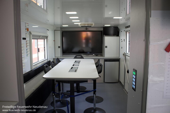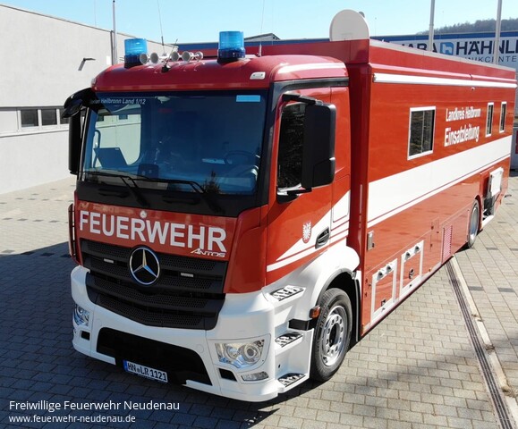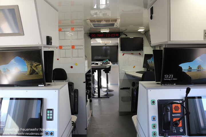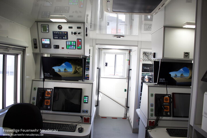 | Heute dreht sich alles um den neuen Einsatzleitwagen des Landkreises Heilbronn. Der 18-Tonner wird von der Fernmeldegruppe der Feuerwehr Neckarsulm betrieben und kann zu Einsätzen im ganzen Landkreis alarmiert werden. Die Aufgaben des ELWs sind vielseitig. Ob als Besprechungsraum für die örtliche Einsatzleitung oder im Stabsmodus mit der Führungsunterstützungseinheit des Landkreises, der ELW ist für alles gewappnet. Der ELW ist eine Ergänzung zur überörtlichen und überbehördlichen Zusammenarbeit im Landkreis und in der modernen Einsatzleitung und Einsatzführung nicht wegzudenken. Bei Einsätzen kann „Florian Heilbronn Land 1/12“ über die Leitstelle alarmiert werden und selbst bei kleineren Einsätzen bietet er schon große Vorteile. Um die Zusammenarbeit zwischen den Feuerwehren im Landkreis zu erleichtern, wurde das alte Modell des Führungsstabs überarbeitet und durch ein Konzept mit Führungsunterstützungsstufen ersetzt. In drei Stufen kann die örtliche Einsatzleitung in diverser Weise unterstützt werden. Die Unterstützungsstufe eins beinhaltet nur das Fahrzeug mit Fernmeldetechnischem Personal, in der Stufe zwei wird ein Trupp der Landkreisressource hinzugezogen. In Stufe drei kann dann auch stabsmäßig gearbeitet werden. Mit der verbauten Technik kann die Einsatzleitung optimal unterstützt werden. Es gibt Möglichkeiten, Lagekarten darzustellen, um die Kräfte optimal aufzustellen, zudem können über einen Außenbildschirm Lageeinweisungen im Außenbereich durchgeführt werden. Das ist nicht nur hilfreich, um mehr Führungskräfte gleichzeitig zu erreichen, auch in der aktuellen Situation kann hier noch der Abstand zwischen den teilnehmenden Personen eingehalten werden. Der Besprechungsraum im Innenbereich bietet zudem auch die Möglichkeit die verschiedenen Stabsbereiche an einen Tisch zu bringen. Mit Laptops und Internetzugang können die Stabsbereichsleiter oder auch die örtliche Einsatzleitung optimal zusammenarbeiten. Die Kommunikation ist durch den Raumgewinn gegenüber dem alten Fahrzeug ebenfalls erleichtert worden. Da hier gleichzeitig mehr Personen im Fahrzeug sein können, verkürzt sich der Kommunikationsweg. Im rückseitigen Bereich des Fahrzeugs befinden sich die Funkarbeitsplätze für das Personal der Fernmeldegruppe. Vier vollwertige Arbeitsplätze mit Funk-, Telefon- und Internetanbindung machen die schnelle Abarbeitung der Aufgaben, die Einsatzdokumentation und die Kommunikation zur Leitstelle und den gebildeten Einsatzabschnitten möglich. Im mittleren Bereich des Fahrzeugs befindet sich ein Steh-Arbeitsplatz. Dieser wird in der Regel vom Fahrzeugführer des Fernmeldepersonals besetzt und dient zur Verständigung zwischen der Einsatzleitung oder dem Stab und dem Funkpersonal. Zusätzlich kann die Person, die diesen Platz besetzt eine Ansprechperson für alle Beteiligten sein. Sie hat durch die Platzierung immer den Überblick über alle Vorgänge. Wenn der ELW zu einem Einsatz hinzugezogen wird, kann schon auf der Anfahrt die Arbeit des Fernmeldepersonals beginnen. Zwei der vier Funkarbeitsplätze sind für die Fahrt ausgelegt und können durch einen ebenfalls schon bei der Fahrt betreibbaren Generator genutzt werden. Dies verschafft erhebliche einsatztaktische Vorteile, dadurch kann der oft lange Anfahrtsweg des Fahrzeugs schon optimal genutzt werden und es geht kaum Zeit verloren. Bei laufenden Einsätzen, bei denen es schon eine Einsatzleitung vor Ort gibt und diese stationär in einem Gebäude ist, kann nahezu die komplette Technik externalisiert werden. Mit der verladenen technischen Ausrüstung ist das Fernmeldepersonal nicht an das Fahrzeug gebunden. Mit Kabeln können Funkarbeitsplätze nach außen verlegt werden. Die tragbaren Telefone sind mit einer guten Reichweite ausgestattet und können kabellos im Außenbereich betrieben werden. Ebenso können die Laptops zur Einsatzdokumentation drahtlos über WLAN mit dem Fahrzeug verbunden werden. Im Bereich des Außenmonitors an der Beifahrerseite des ELW befindet sich eine Markise, welche vor Regen und auch vor Sonne schützen kann. Wenn die Markise ausgefahren ist, können größere Lagebesprechungen wetterunabhängig im Außenbereich abgehalten werden. Ergänzend dazu wird auch eine Hygienestation vorgehalten, die nicht nur jetzt in Zeiten von Corona wichtig ist, sondern auch zur Schwarz-Weiß Trennung im Einsatzfall beiträgt. Durch die vielen technischen Neuerungen gegenüber dem Vorgängerfahrzeug waren gute Organisation und Ausbildung nötig, um das Fahrzeug und sein Personal für den Einsatz vorzubereiten. Selbstverständlich gibt es noch Raum für Verbesserung und erst nach ein paar Einsätzen können hier erste Resümees gezogen und die Stellschrauben nachjustiert werden. |