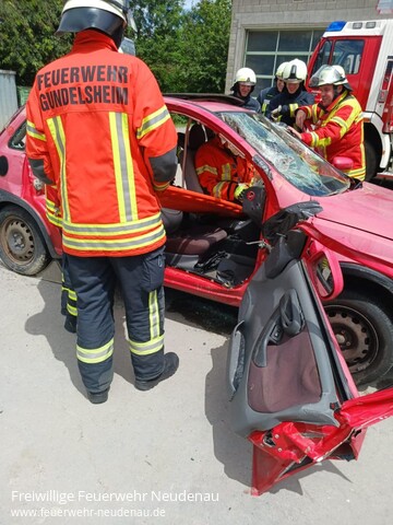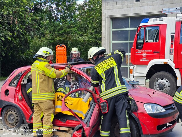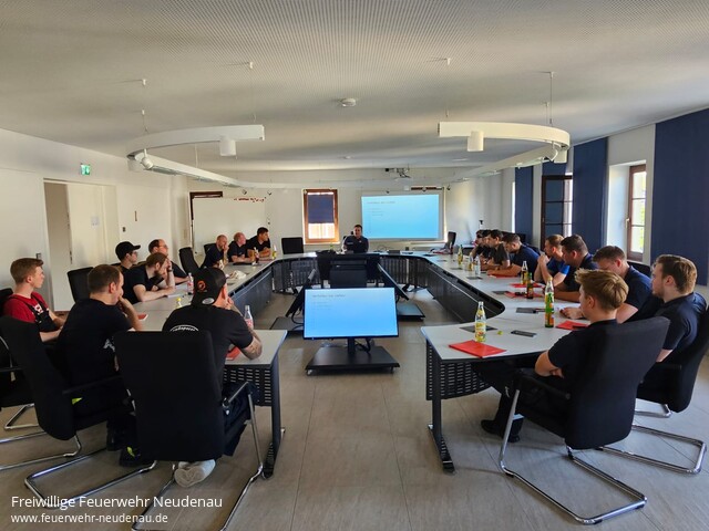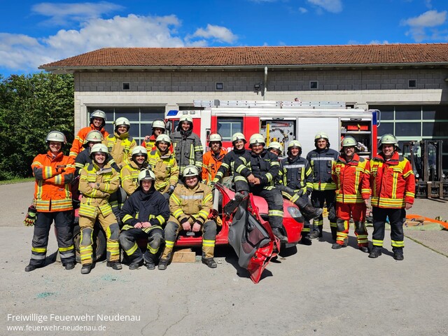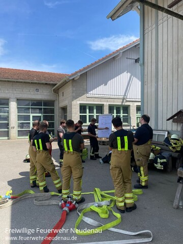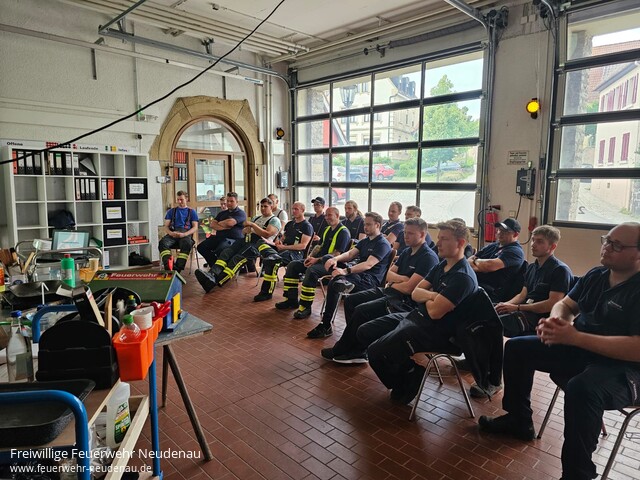 | Unter der Leitung von Dominik Leutz und Florian Wagner wurde vom 03. bis 15. Juni 2024 ein Truppführer-Lehrgang bei der Freiwilligen Feuerwehr Neudenau durchgeführt. Die 18 Teilnehmer aus den Feuerwehren Talheim, Gundelsheim, Jagsthausen, Hardthausen, Beilstein, Neckarwestheim, Eberstadt, Roigheim und Brackenheim erlernten in den 35 Unterrichtsstunden das eigenverantwortliche Führen eines Trupps, nach Auftrag innerhalb einer Staffel oder Gruppe. Die Lerninhalte aus den Bereichen Rechtsgrundlagen, Brennen und Löschen, Fahrzeugkunde, Verhalten bei Gefahr, ABC-Gefahrstoffe, Löscheinsatz, Brandsicherheitswachdienst sowie Technische Hilfeleistung wurden sowohl in theoretischen Unterrichtseinheiten wie auch in praktischen Übungsstationen vermittelt und vertieft. Den theoretischen und praktischen Leistungsnachweis konnten alle Teilnehmer mit Erfolg abschließen. Für die Zukunft wünschen die Ausbilder den Lehrgangsteilnehmer viel Glück und Erfolg bei ihrem weiterem Feuerwehrdienst. Herzlichen Glückwunsch an alle neuen Truppführern und einen herzlichen Dank an das Ausbilderteam und allen, die zum Gelingen des Lehrgangs beigetragen haben ! Erfolgreich am Lehrgang teilgenommen haben die Kameraden folgender Feuerwehren: - Robert Bertsch , Luca Kohlhardt , Lars Manske ( FW Talheim )