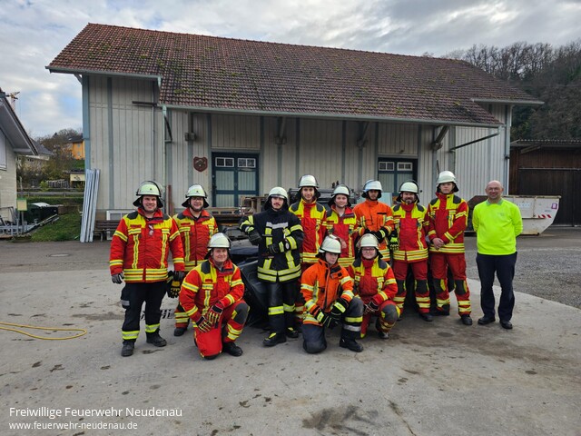 | Unter der Leitung von Dominik Leutz und Florian Wagner wurde vom 08.11 bis 06.12.2025 ein Truppmann 1 Lehrgang bei der Freiwilligen Feuerwehr Neudenau durchgeführt. Die Truppmann 1-Ausbildung, auch Grundausbildung genannt, ist der erste Lehrgang, den eine Feuerwehrkraft in dessen aktiven Feuerwehrkarriere durchlaufen muss. Er qualifiziert die Teilnehmer sozusagen für den Einsatzdienst. Themen wie „Brennen und Löschen“, der klassische „Löscheinsatz“ aber auch grundlegende Tätigkeiten in der „technischen Hilfeleistung“ wurden in den 70 Stunden des Truppmann 1-Teils abgeleistet. Hier gab es auch Unterstützung durch Herrn Günter Biernoth , er übermittelte den Teil der „Rettung“. Den theoretischen und praktischen Leistungsnachweis konnten alle Teilnehmer mit Erfolg abschließen. Für die Zukunft wünschen die Ausbilder den Lehrgangsteilnehmer viel Glück und Erfolg bei ihrem weiterem Feuerwehrdienst. Herzlichen Glückwunsch und einen herzlichen Dank an das Ausbilderteam und allen, die zum Gelingen des Lehrgangs beigetragen haben ! Erfolgreich am Lehrgang teilgenommen haben die Kameraden folgender Feuerwehren : - Robert Scholz ( FW Neudenau )