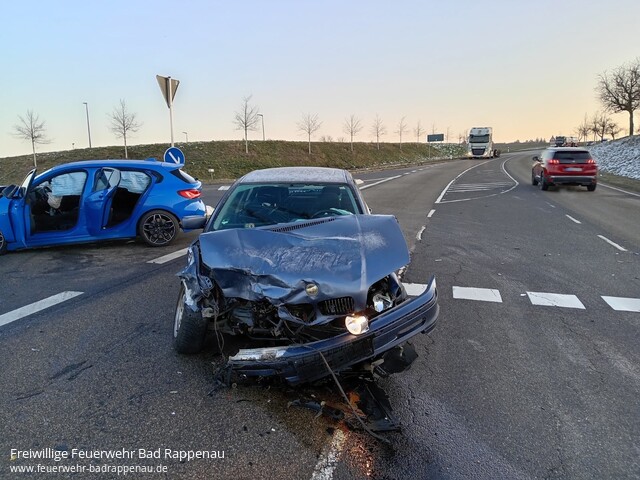 ![]() ![]() | Am Montagmorgen ereignete sich an der Kreuzung L1107/Kieselhälde in Bad Rappenau-Bonfeld ein Verkehrsunfall, bei dem drei Personen verletzt wurden. Der Rettungsdienst übernahm die Versorgung der Verletzten. Unsere Aufgabe bestand darin, die Fahrzeugbatterien fachgerecht abzuklemmen. Die Straßenmeisterei, die sich direkt an der Kreuzung befindet, übernahm die Reinigung der Fahrbahn. Wir waren mit zwei Fahrzeugen etwa 50 Minuten im Einsatz. | |||||