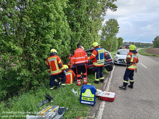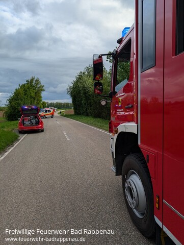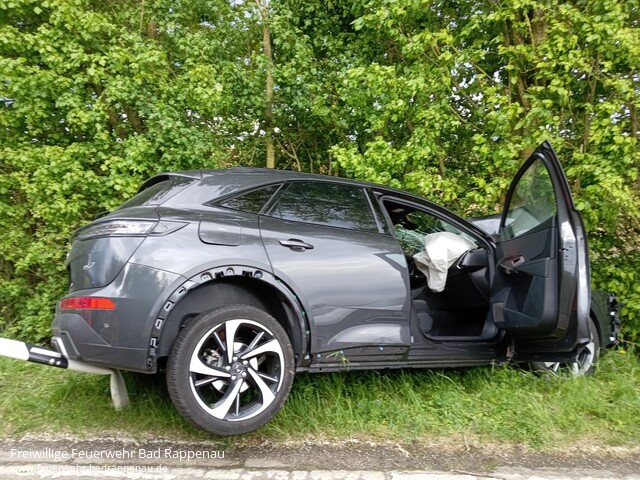 ![]() ![]() ![]() | Am Donnerstagabend kam es auf der Ortsstraße im Bad Rappenauer Ortsteil Grombach, unweit des Lerchenbergs, zu einem Verkehrsunfall. Ein Fahrzeug kam in Fahrtrichtung Ortseingang nach links von der Fahrbahn ab und prallte gegen einen Baum. Dabei lösten die Airbags aus. Durch den Aufprall wurde auch das automatische Notrufsystem eCall ausgelöst, das seit 2018 in der EU verpflichtend ist, und setzte einen Notruf an die Leitstelle ab. Daraufhin wurde die Abteilung Grombach per Voralarm zu einem eCall-Einsatz alarmiert. Nur kurze Zeit später erfolgte eine Alarmstichworterhöhung auf „VU PKW 1 Person klemmt“, da das Führungs- und Lagezentrum (FLZ), die Leitstelle der Polizei Heilbronn, offenbar durch Sprachkontakt mit dem Fahrer erfahren hatte, dass dieser im Fahrzeug eingeklemmt sei und Rauch wahrgenommen wurde. Zur Unterstützung rückten daraufhin das Hilfeleistungslöschgruppenfahrzeug (HLF 20) sowie der Rüstwagen 2 (RW 2) der Abteilung Bad Rappenau aus. Die Einsatzkräfte der Abteilung Grombach konnten das Fahrzeug rasch sichern, den Fahrer befreien und mit der Erstversorgung beginnen, bis der Rettungsdienst eintraf. Der Rauch stammte vermutlich von der Airbagauslösung, dennoch wurde das Fahrzeug vorsorglich gründlich kontrolliert. Nach Übergabe der verletzten Person an den Rettungsdienst wurde die Einsatzstelle an die Polizei übergeben und wir rückten wieder ein. Wir wünschen der verletzten Person an dieser Stelle eine schnelle und vollständige Genesung! | |||||||