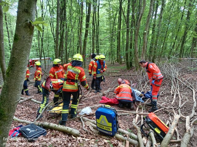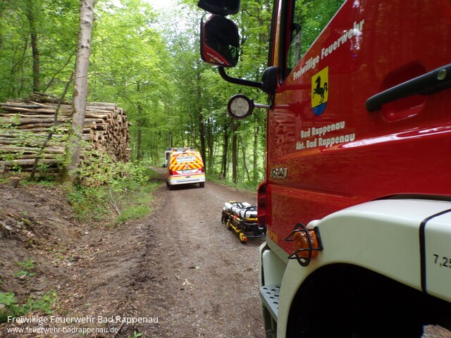 ![]() ![]() | Mit dem Alarmstichwort „Hilfeleistung Rettungsdienst“ wurde die Abteilung Bad Rappenau in ein Waldgebiet zwischen Zimmerhof und Siegelsbach alarmiert. Eine Wanderin war in unwegsamem Gelände gestürzt. Beim Eintreffen der Feuerwehr war die Patientin bereits durch den Rettungsdienst medizinisch erst versorgt worden. Aufgrund des schwer zugänglichen Geländes unterstützte die Feuerwehr die Rettungsmaßnahmen mit einer Schleifkorbtrage und ausreichend Einsatzkräften. Gemeinsam konnte die Patientin schonend aus dem Wald transportiert und dem Rettungsdienst zur weiteren Behandlung übergeben werden. Die Feuerwehr Bad Rappenau war mit rund 15 Einsatzkräften und drei Fahrzeugen im Einsatz. | |||||