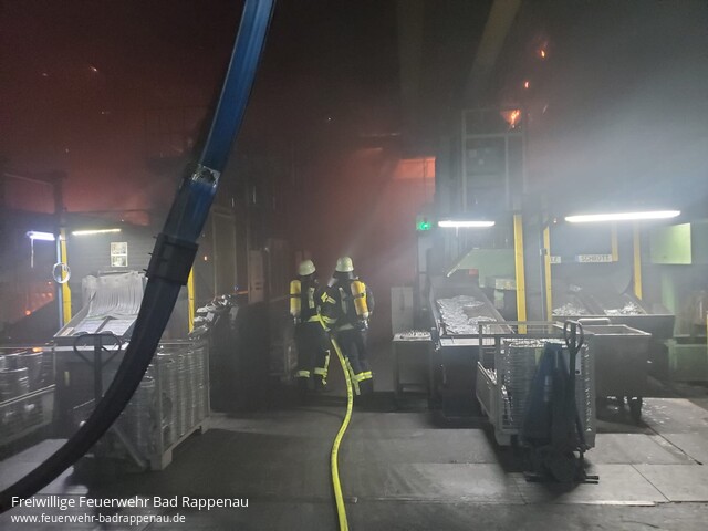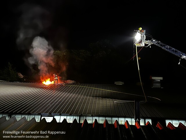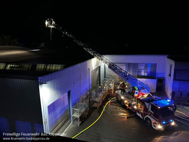 ![]() ![]() ![]() | In der Nacht auf Freitag wurde die Feuerwehr Bad Rappenau zur Unterstützung bei einem Brand in einem Industriegebäude nach Massenbachhausen alarmiert. Vor Ort brannte eine Aluminium-Druckgussmaschine; das Feuer hatte bereits auf das Hallendach übergegriffen. Die Feuerwehr Bad Rappenau rückte mit einem Hilfeleistungslöschgruppenfahrzeug, der Drehleiter sowie dem Kommandowagen zur Einsatzstelle aus. Nach dem Eintreffen wurde die Drehleiter umgehend in enger Abstimmung mit dem Einsatzleiter der Feuerwehr Massenbachhausen in Stellung gebracht und das Dach kontrolliert. Bereits bei der ersten Erkundung mit der Drehleiter konnten offene Flammen auf dem Dach festgestellt werden, die sofort mit dem Wenderohr abgelöscht wurden. Parallel dazu ließ der Gruppenführer des HLF zwei Trupps unter Atemschutz ausrüsten und in Bereitstellung gehen, um den Trupp der Feuerwehr Massenbachhausen im Innenangriff bei Bedarf ablösen zu können. Nachdem die Flammen im Innen- und Außenbereich unter Kontrolle waren, wurde das Dach mittels einer Rettungssäge weiter geöffnet, um Glutnester gezielt ablöschen zu können. Dabei wurde der eingesetzte Feuerwehrangehörige mit Absturzsicherung gesichert. Die Arbeiten auf dem Dach erfolgten in enger Absprache mit dem Einsatzleiter der Feuerwehr Massenbachhausen. Nachdem das Dach geöffnet und kontrolliert worden war, war der Einsatzauftrag für die Feuerwehr Bad Rappenau beendet. Die Feuerwehr Bad Rappenau konnte somit wieder einrücken. Im Einsatz waren drei Fahrzeuge und 14 Einsatzkräfte der Feuerwehr Bad Rappenau. | |||