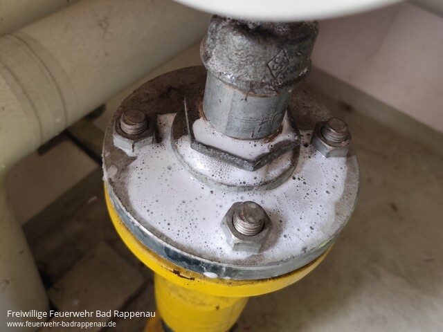 ![]() | Noch während unsere Kräfte mit dem Gefahrstoffzug in Schwaigern-Stetten in Bereitstellung und damit gebunden waren, informierte uns die Leitstelle Heilbronn über Funk, dass in einem Betrieb in Bad Rappenau-Fürfeld eine Brandmeldeanlage ausgelöst hatte. Zur Unterstützung wurden neben der Abteilung Süd auch die Abteilung Grombach sowie die Drehleiter der Feuerwehr Bad Wimpfen alarmiert. Vor Ort konnte zunächst keine Auslösung an der Brandmeldeanlage festgestellt werden. Nach einer genaueren Erkundung stellte sich jedoch heraus, dass vermutlich eine leichte Gasundichtigkeit einen Gaswarnmelder ausgelöst hatte. Die Firma Syna sprühte ein spezielles Mittel auf eine Hauptzuleitung. Durch die entstehende Bläschenbildung konnte die Undichtigkeit lokalisiert werden. Wir waren mit fünf Fahrzeugen sowie der Drehleiter aus Bad Wimpfen im Einsatz. | ||||||