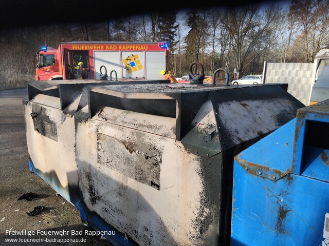 ![]() | Am Sonntag wurde die Abteilung Bad Rappenau um 10:36 Uhr zu einem Kleinbrand im Stadtteil Zimmerhof alarmiert. Vor Ort brannte Unrat in einem Müllcontainer. Mithilfe eines C-Rohres wurde der Container durch einen Trupp unter Atemschutz mit Wasser geflutet. Anschließend wurde der Unrat aus dem Container entfernt und endgültig abgelöscht. Wir waren mit zwei Fahrzeugen rund eine halbe Stunde im Einsatz. | |||