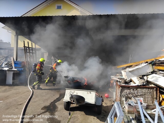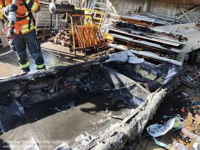 ![]() ![]() | Mit dem Alarmstichwort „Rauchentwicklung Industriegebäude“ wurde die Abteilung Bad Rappenau in die Riemenstraße alarmiert. Bereits auf der Anfahrt konnte schwarzer Rauch wahrgenommen werden. Mit Hilfe eines C-Rohres konnte der Angriffstrupp unter Pressluftatmer den Brand schnell unter Kontrolle bringen und schließlich löschen. Der Einsatz war nach etwa 30 Minuten beendet und die Einsatzstelle wurde dem Betreiber übergeben. | |||||