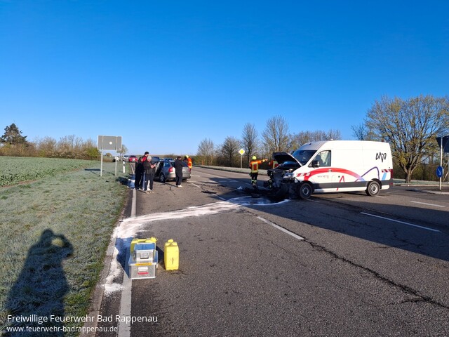 | Infolge eines Verkehrsunfalls setzte ein Fahrzeug über das E-Call-System automatisch einen Notruf ab. Während sich unsere Einsatzkräfte noch bei der zweiten Auslösung der Brandmeldeanlage (Einsatz Nr. 56) befanden, kam es zu diesem Folgeeinsatz zwischen Babstadt und Bad Rappenau. Vor Ort mussten lediglich ausgelaufene Kraftstoffe aufgenommen sowie die Einsatzstelle abgesichert werden. Wir waren mit zwei Fahrzeugen etwa 35 Minuten im Einsatz. |