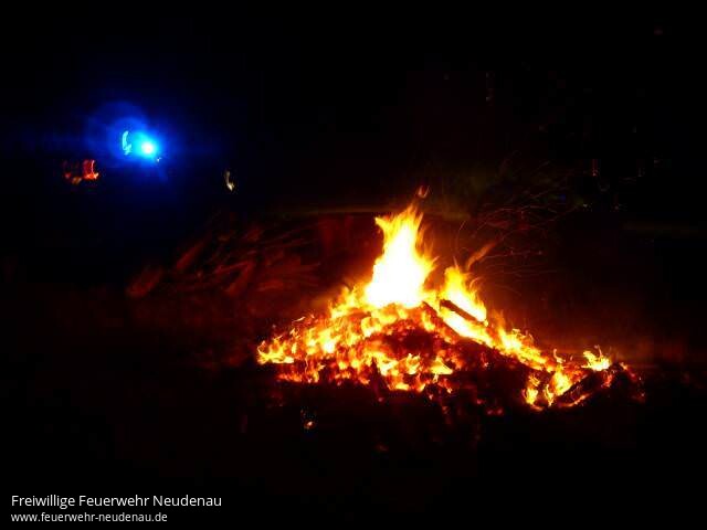 | Zunächst war weder klar was, noch wo genau es brannte. Anrufer meldeten bei der Integrierten Leitstelle (ILS) Heilbronn, dass Feuerschein im Bereich der Schulstraße in Neudenau zu sehen sei. Die Absuche ergab, dass im Gewann Losberg, außerhalb der bebauten Fläche, ein Mitbürger Bretter verbrannte. Der Mann hatte bei Tageslicht begonnen und sich dann auch keine weiteren Gedanken darüber gemacht, als es Nacht wurde und der Feuerschein entsprechend weit zu sehen war. Das Feuer wurde kontrolliert abbrennen gelassen. Dem Verursacher wird seitens der Stadt der Feuerwehreinsatz in Rechnung gestellt werden. |