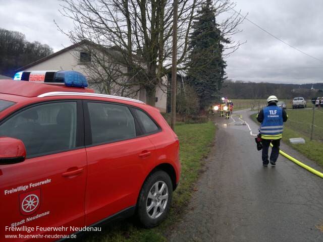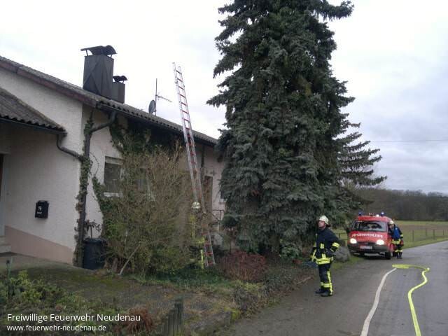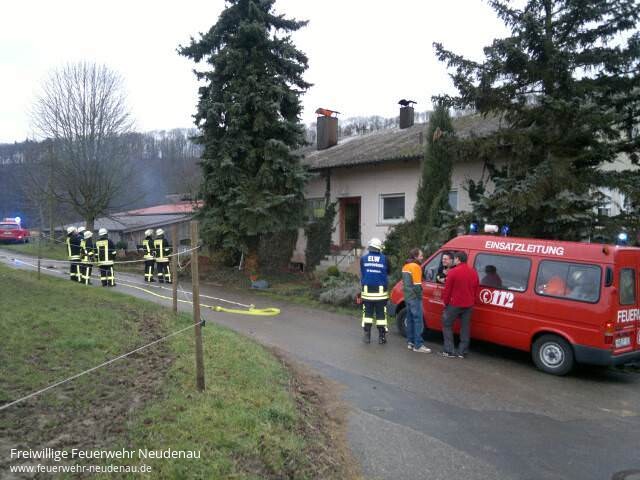 ![]() ![]() ![]() ![]() | Zu einem Kaminbrand, im Wohnhaus eines landwirtschaftlichen Anwesens, wurden die Einsatzabteilungen Neudenau und Herbolzheim alarmiert. Beim Eintreffen der Feuerwehr schlugen offene Flammen aus dem Kamin. Vom Neudenauer Tanklöschfahrzeug (TLF 16/25) wurde sofort ein Trupp, ausgerüstet mit Atemschutz, dem Highpresslöscher und der Wämerbildkamera, ins Dachgeschoss geschickt, um dort die Lage zu erkunden. Ein Trupp des Löschgruppenfahrzeugs (LF 10/6) aus Herbolzheim wurde unter Atemschutz in den Kellerbereich zur Heizungsanlage und zum unteren Bereich des betroffenen Kamins geschickt. Hier wurde kurz die Kamintüre geöffnet und der Brand mit Pulverlöschern bekämpft. Zusätzlich wurde durch einen weiteren Trupp im Außenbereich ein C-Rohr vorgenommen, um das Dach gegen den Funkenflug zu sichern. Um bei Bedarf die Löschwasserversorgung sicherstellen zu können wurde der Gerätewagen (GW) zur Einsatzstelle beordert. Hydranten gibt es im Bereich der Einsatzstelle keine, weil sie im Außenbereich liegt. Deshalb wäre nur eine Wasserförderung von der Jagst möglich gewesen. Durch den Einsatz des Löschpulvers zeigte sich sofort eine Löschwirkung, so dass kein offenes Feuer mehr aus dem Kamin schlug. Bereits nach ca. 15 Minuten war auch der alarmierte Schornsteinfeger vor Ort. Zusammen mit ihm wurde der Kamin ausgeräumt und das Material abgelöscht. Nachdem der Kaminfeger sein Ok gab und nach der Kontrolle der Einsatzstelle mit der Wärmebildkamera, wurde die Einsatzstelle wieder an den Gebäudeeigentümer übergeben. Einsatzende war gegen 17.00 Uhr. | ||||||