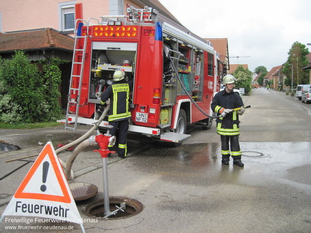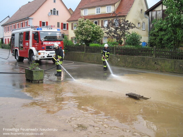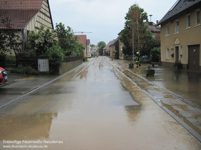 ![]() ![]() ![]() ![]() ![]() | Die Einsatzabteilungen Siglingen und Neudenau wurden mit Stichwort "Straße überflutet" nach Kreßbach alarmiert. Mit Hilfe des städtischen Bauhofes wurde die Straße von Schmutz und Wasser befreit. Während der Einsatzmaßnahmen bestand eine Vollsperrung. Die Ortsdurchfahrt Kreßbach (K2136 und K2027) ist zur Zeit auch Umleitungsstrecke für die wegen Bauarbeiten gesperrte L 1096 zwischen Siglingen und Züttlingen. Gegen 13.00 Uhr konnte der Einsatz beendet und die Straße für den Verkehr wieder freigegeben werden. | |||||