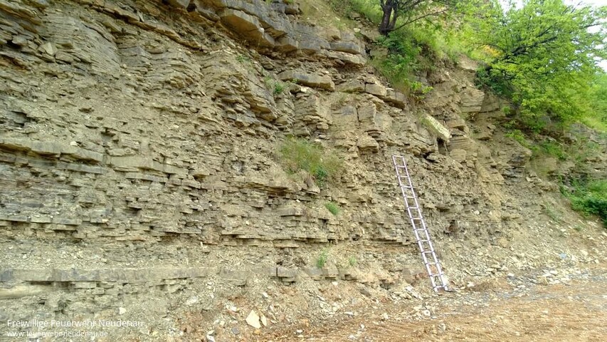 ![]() ![]() ![]() ![]() | Durch einen Mitbürger wurde der Neudenauer Abteilungskommandant telefonisch informiert, dass im Bereich des alten Steinbruches, in der Erddeponie des Landkreises, Personen an der Felswand klettern würden. Die Polizei hatte der Anrufer schon verständigt. Nach kurzer Rücksprache mit dem Polizeirevier Neckarsulm fuhr der Kommadowagen (KdoW), mit einem Schlüssel für das Deponieareal, die Einsatzstelle an. Vor Ort stellte sich heraus, dass es sich nicht um Kletterer, sondern um Geologen handelte. Aufgrund der Tatsache, dass sie keine Genehmigung für ihr Tun hatten, wurde von der Polizei ein Platzverweis ausgesprochen. Einsatzende war gegen 11.30 Uhr. | ||