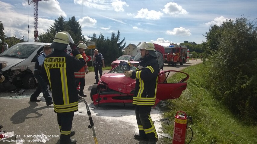 ![]() ![]() | Zu einem Verkehrsunfall mit eingeklemmter Person, auf der K 2136 zwischen Siglingen und Kreßbach, wurde die Feuerwehr Neudenau alarmiert. Die verletzte Person wurde mit hydraulischem Rettungsgerät befreit und dem Rettungdienst übergeben. Die Batterien der Unfallfahrzeuge wurden abgeklemmt und austretende Betriebstoffe aufgenommen, sowie der Brandschutz sichergestellt. Beide Fahrer der verunfallten Fahrzeuge wurden durch den Rettungsdienst in Kliniken gebracht. Einsatzende war gegen 12:30 Uhr. | |||||||||||