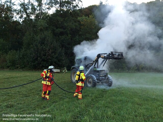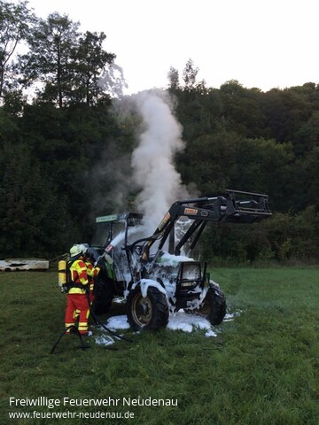 ![]() ![]() ![]() ![]() ![]() | Höchstwahrscheinlich eine technische Ursache hatte der Brand eines Traktors in der Hofwiese bei Neudenau-Herbolzheim. Die alarmierte Feuerwehr hatte den Brand rasch unter Kontrolle und gelöscht. Dennoch entstand ein Sachschaden von ca. 20000 an dem Traktor. | ||||