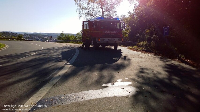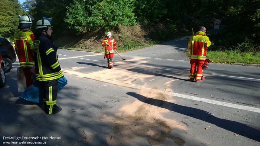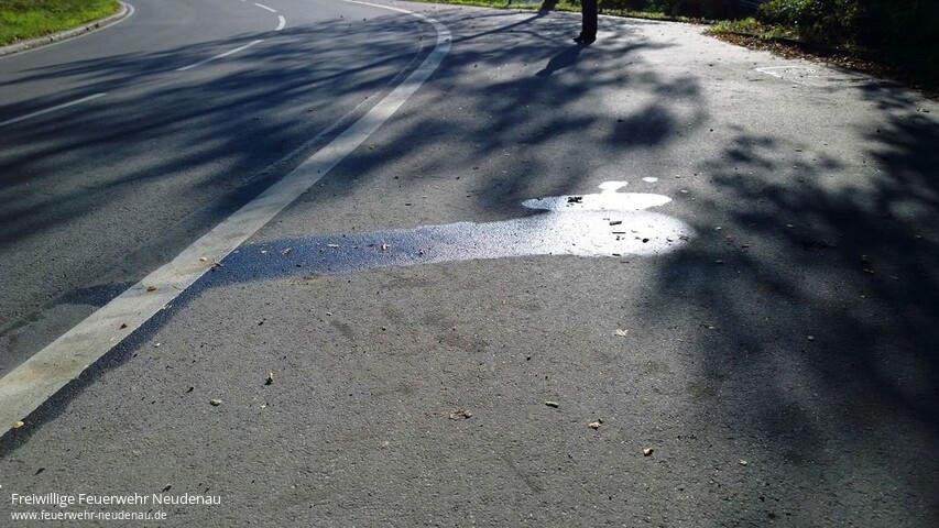 ![]() ![]() ![]() ![]() ![]() | Gemeldet wurde eine Ölspur, vermutlich nach Verkehrsunfall. Nach Inaugenscheinnahme der Ölspur hielt der Einsatzleiter ein Tätigwerden für erforderlich, weil die Flüssigkeiten über die komplette Fahrbahn gelaufen waren und somit eine Gefahr für den fließenden Verkehr darstellten. Zufällig war das Löschgruppenfahrzeug (LF 10/6) der Einsatzabteilung (EA) Herbolzheim besetzt und wurde deshalb mit dem Einsatz beauftragt, somit war eine Alarmierung weiterer Kräfte nicht erforderlich. Das Öl wurde mittels Ölbinder aufgenommen und beseitigt. Gefahrenzeichen wurde aufgestellt. Einsatzende war gegen 10.30 Uhr. | |||