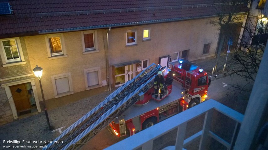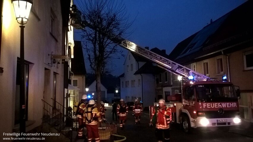 ![]() ![]() ![]() | Glimpflich abgelaufen ist am Silverstermorgen ein Einsatz der Feuerwehren Neudenau und Möckmühl. Gegen halb acht meldeten Nachbarn eine Rauchentwicklung aus einem Geschäfts- und Wohngebäude in der Neuen Anlage in Neudenau, genau gegenüber des Brandobjekts von 2011, bei dem es zu einem immensen Schaden kam. Die Integrierte Leitstelle alarmierte die gesamte Feuerwehr Neudenau sowie die Drehleiter aus Möckmühl. Beim Eintreffen war zunächst nicht klar, ob sich noch Personen im Gebäude aufhalten, kurz darauf konnte zunächst dazu Entwarnung gegeben werden. Der Inhaber des Gebäudes öffnete alle Türen bis zur Rauchgrenze im 2. Obergeschoss. Ab hier war durch eine starke Verrauchung keine weitere Erkundung möglich. Ein Trupp ging mit Kleinlöschgerät zur Erkundung und möglichen Brandbekämpfung ins 2. und 3. OG vor. Nach einer kurzen Suche konnte der Brandherd lokalisiert werden. Eine Kerze hatte den Kunststoffrahmen eines Fensters in Brand gesetzt, dieser war bereits erloschen. Daher bestand die weitere Aufgabe nur darin, das Gebäude rauchfrei zu machen, dazu wurde ein Überdruckbelüfter in Stellung gebracht. Außerdem wurde die Umgebung mit der Wärmebildkamera auf Glutnester kontrolliert. Einsatzende war um 08.30 Uhr. | |||||||||
