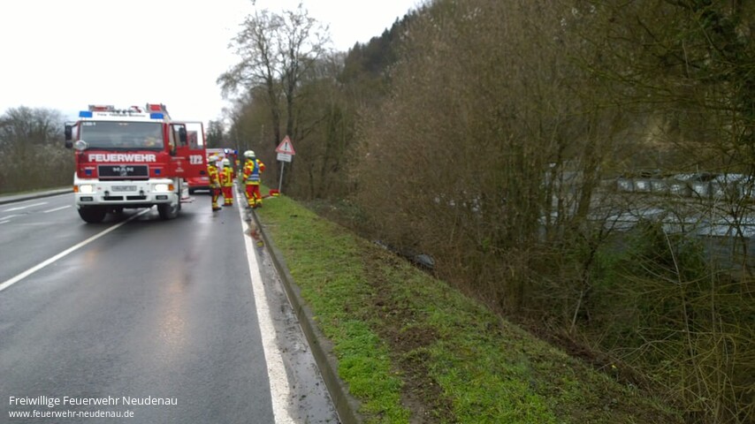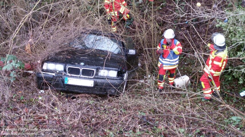 ![]() ![]() ![]() | Zu einem Verkehrsunfall mit eingeklemmter Person wurde die Feuerwehr Neudenau am Nachmittag alarmiert. Die Einsatzstelle musste zunächst länger gesucht werden, weil sich die Person, die das verunfallte Fahrzeug der Leitstelle gemeldet hatte, nicht am Straßenrand aufhielt. Beim Eintreffen konnte ein Unfallfahrzeug etwa 5 Meter unterhalb des Straßenverlaufs in einem Graben ausfindig gemacht werden. Sofort ging ein Feuerwehrmann des ersteintreffenden Kommandowagens zur Erkundung nach unten. Ein Unfallopfer konnte nicht aufgefunden werden. Mit mehreren Kräften vom nächsteintreffenden Tanklöschfahrzeug wurde die nähere Umgebung abgesucht. Auch hier wurde kein Patient oder Unfallbeteiligter aufgefunden. Die übrigen alarmierten Kräfte konnten schnell aus dem Einsatz entlassen werden, darunter auch die Besatzungen von Rettungswagen und Notarzteinsatzfahrzeug. Die Einsatzstelle wurde dann an die Polizei übergeben, Einsatzende war gegen 15.45 Uhr. | |||||||