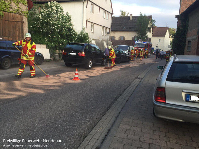 ![]() ![]() | Kurz vor 20 Uhr am Samstagabend wurde die Einsatzabteilung Herbolzheim in die Neudenauer Straße alarmeirt. Nach einem Verkehrsunfall mit zwei beteiligten Fahrzeugen traten Betriebsmittel aus den Fahrzeugen aus.Aus unbekannten Gründen waren diese auf der Ortdurchfahrt frontal kollidiert. Die Feuerwehrkräfte streuten das Öl mit Ölbindemittel ab. In Absprache mit der Polizei musste die Ortsdurchfahrt während den Arbeiten kurz gesperrt werden. Einsatzende war gegen 21.30 Uhr. | |