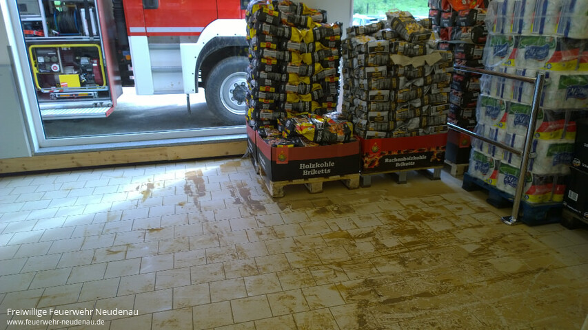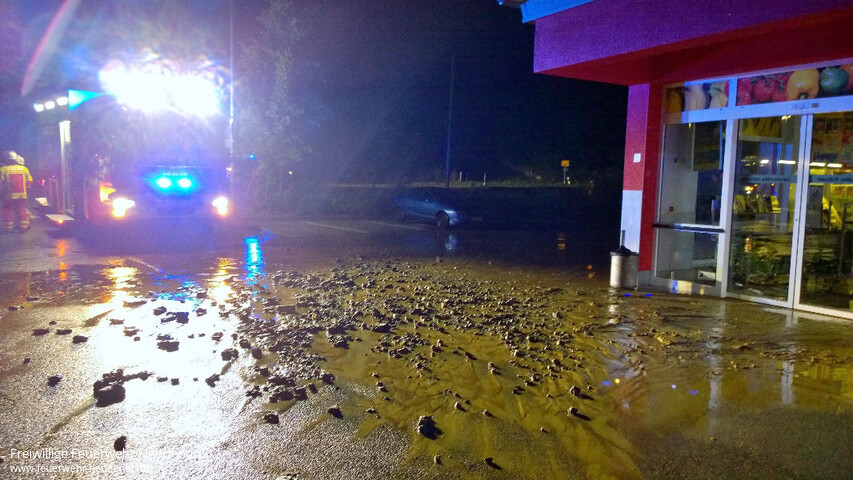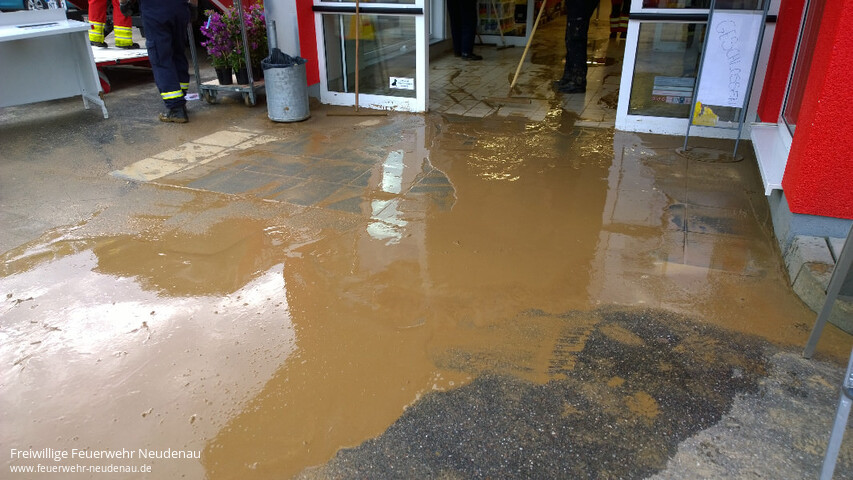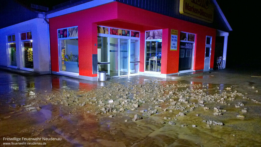 ![]() ![]() ![]() ![]() ![]() | Wieder kam es an der Mündung von Eichklinge und Losklinge zur Überflutung der Landesstraße 1096 Richtung Siglingen. Wieder lief das Wasser in die Räume eines angrezenden Supermarktes. Wieder waren Straße und Parkplatz voller Schlamm und Geröll. Bis 03.00 Uhr waren die Frauen und Männer der Einsatzabteilung Neudenau im Einsatz. Zwischenzeitlich wurden mit einer Verantwortlichen noch die Räumlichkeiten einer angrenzenden Kindertagesstätte kontrolliert. Dort war das Schmutzwasser dieses Mal zum Glück nicht eingedrungen. Beim Supermarkt konnte in der Nacht kein verantwortlicher Schlüsselträger erreicht werden, so dass ein Einsatz im Gebäude nicht möglich war. Deshalb resultierte ein Folgeeinsatz, zu dem am Mittwoch, 08.08.2016, um 07.20 Uhr, der Gerätewagen-Logistik (GW-L2) ausrückte. Unterstützt wurde die Feuerwehr jeweils vom städtischen Bauhof. Einsatzende ca. 10.00 Uhr | ||||