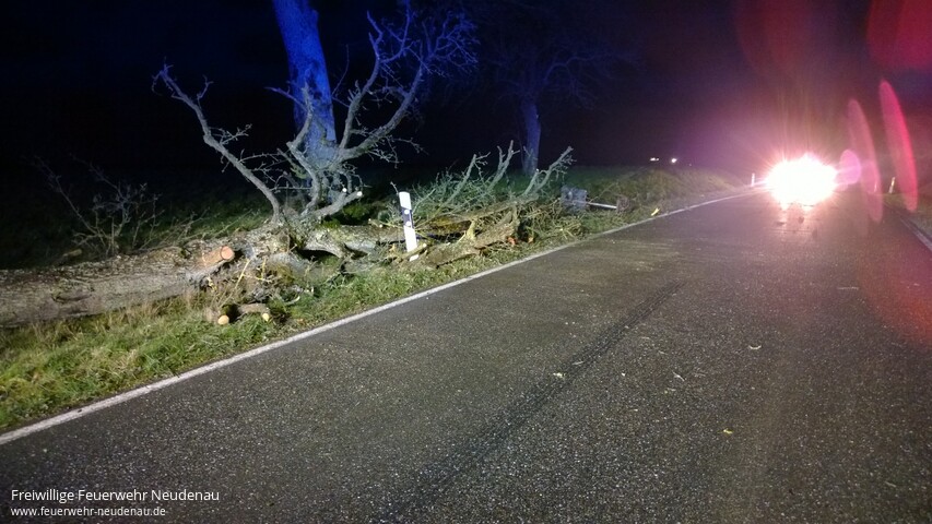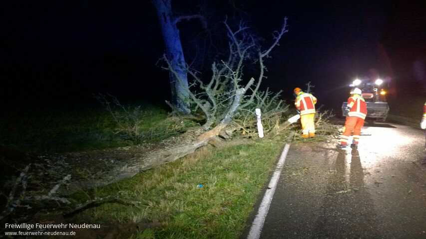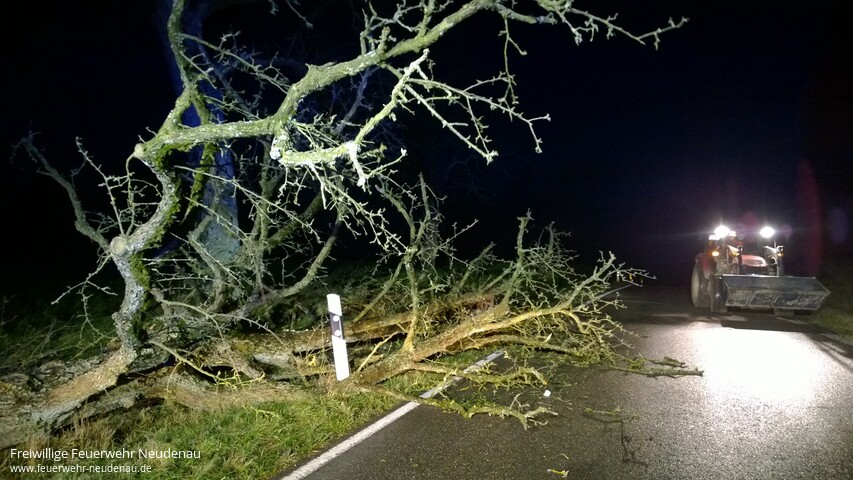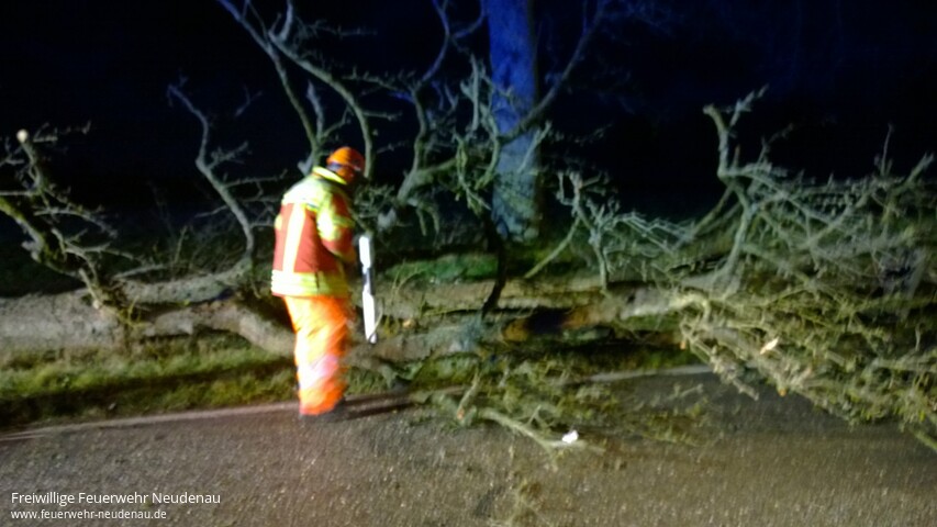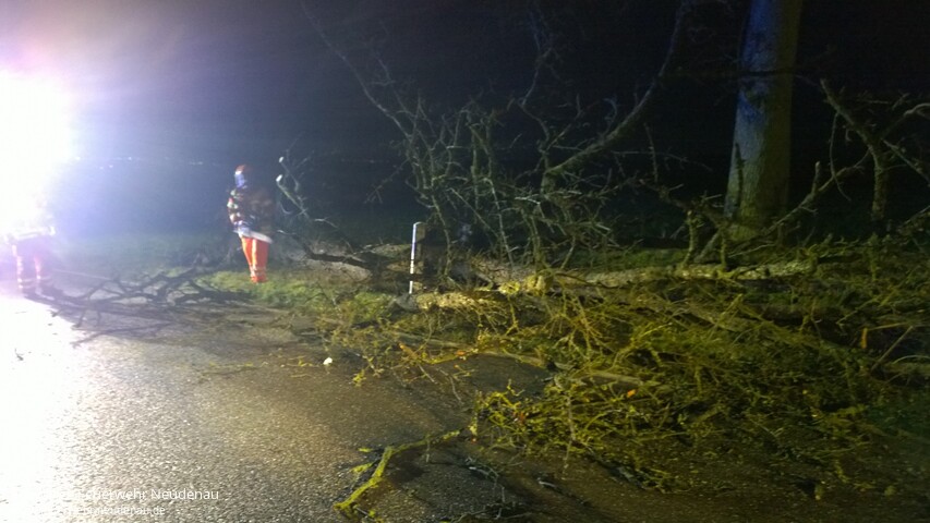 ![]() ![]() ![]() ![]() ![]() | Drei Einsatzstellen bescherte der Sturm der Neudenauer Feuerwehr in den frühen Morgenstunden des Donnerstag. Alarmiert wurden die Einsatzabteilungen Siglingen und Neudenau jeweils zu auf die Straße gestürzten Bäumen. Die Hindernisse wurden, mittels Kettensägen, beseitigt und die Straßen wieder gereinigt. Einsatzende war gegen 07.45 Uhr. | ||||