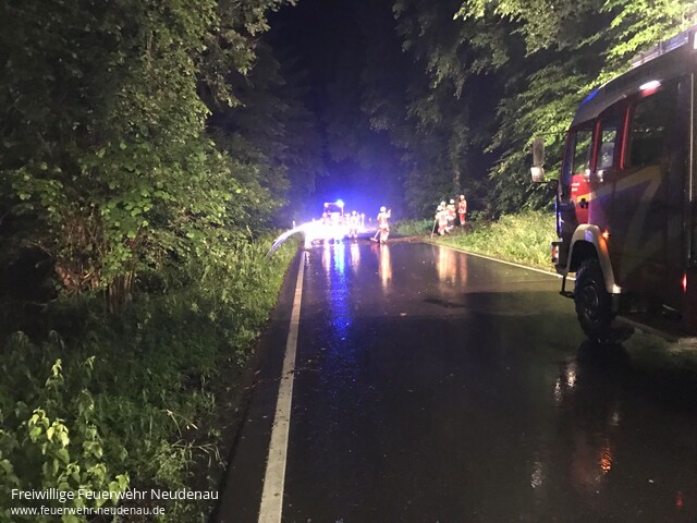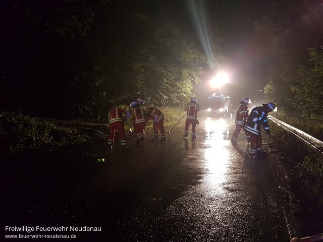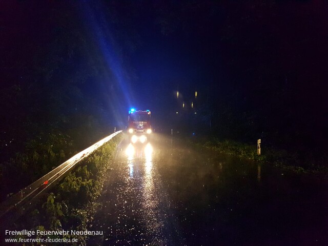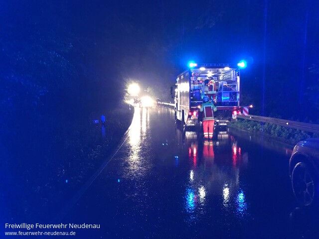 ![]() ![]() ![]() ![]() | Auf die L 526 wurde die Feuerwehr Neudenau zur Reinigung der Fahrbahn alarmiert. Durch Starkregen war Erde und Geröll auf die Straße gespült worden. Die Fahrbahn wurde gereinigt und entsprechende Gefahrenzeichen aufgestellt. | |||||
