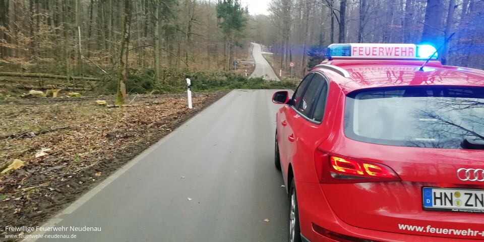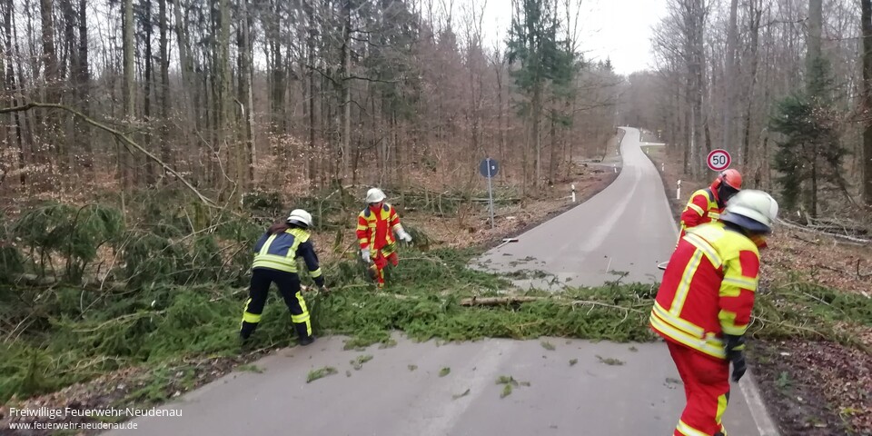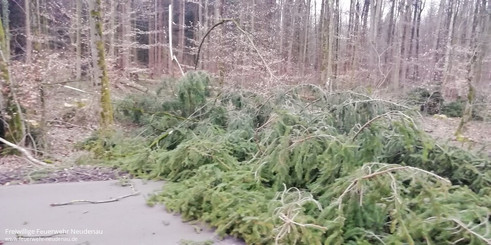 ![]() ![]() ![]() | Zu einem Windbruch wurde die Einsatzabteilung Neudenau am Faschingsonntag alarmiert. Mehrere Fichten wurden durch starke Böen entwurzelt, eine davon kam auf der Gemeindeverbindungsstraße zum Liegen. Der Baum wurde zersägt und die Fahrbahn anschließend gereinigt. | ||