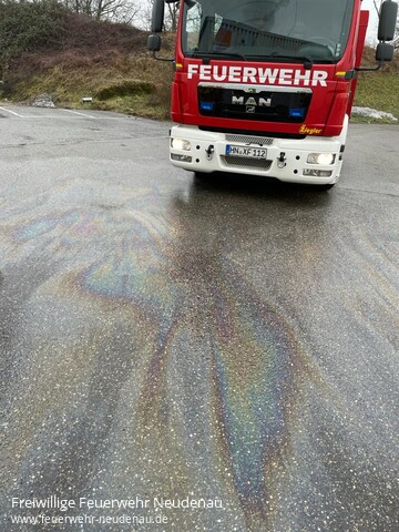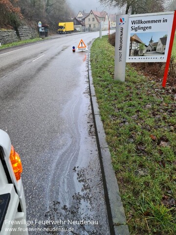 ![]() ![]() ![]() ![]() ![]() | Zu einer Ölspur wurden die Einsatzabteilungen Neudenau und Siglingen alarmiert. Von der Kreisgrenze von Allfeld kommend bis zu einer Firma in Siglingen zog sich eine größere Ölspur. Die Maßnahmen der Feuerwehr bestanden aus