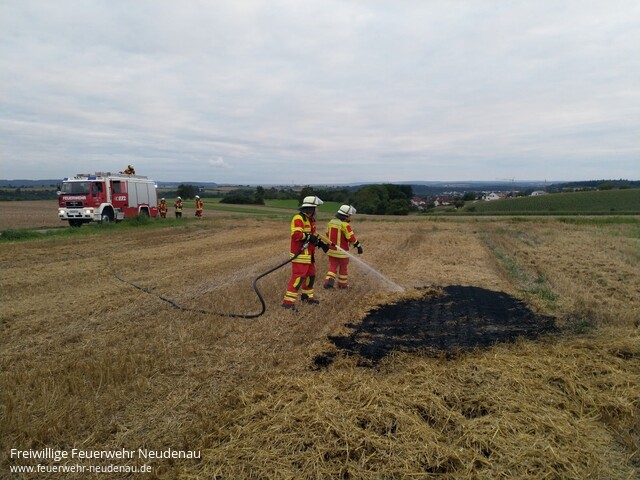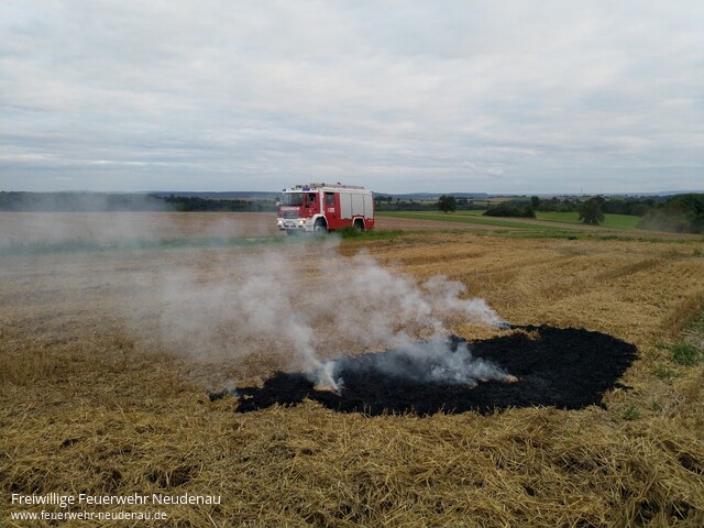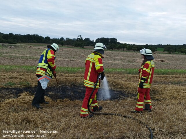![]() ![]() ![]() | Telefonisch wurde die Feuerwehr Neudenau durch einen Anwohner über einen kleineren Flächenbrand im Gewann Gutmannsgraben in Neudenau informiert. Da sich die „Gruppe Blau“ der Einsatzabteilung Neudenau gerade in einer Übung befand, konnte das Tanklöschfahrzeug TLF 16/25 direkt dorthin ausrücken - die Integrierte Leitstelle wurde über den Einsatz informiert. Mit dem Schnellangriff des TLF konnte die etwa 5m² große Fläche schnell abgelöscht werden. Ein Landwirt, der sich in der Nähe befand, erklärte sich dann noch erfreulicherweise bereit, die Ackerfläche mit dem Grubber zu bearbeiten, um ein Wiederaufflammen zu verhindern. | ||