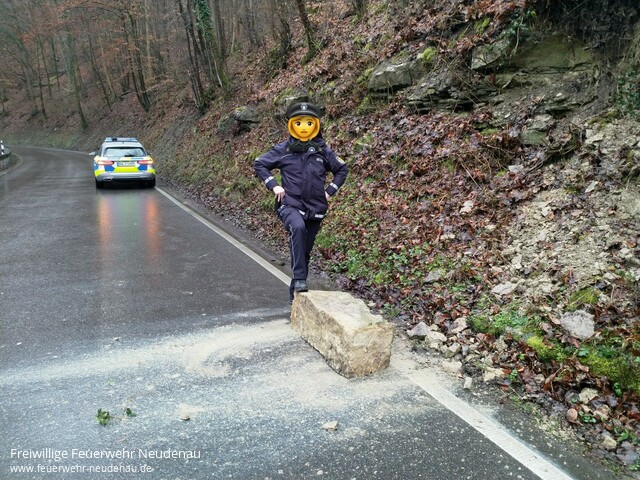 ![]() | Zu einen aus dem Hang heruntergefallenen Felsbrocken wurde die Einsatzabteilung Neudenau auf die L 526 (Schefflenztal) zwischen Untergriesheim und Allfeld alarmiert. Der Steinquader wurde mit Muskelkraft von der Fahrbahn entfernt und die Straßenmeisterei über den Vorfall informiert. Einsatzende war um 10.50 Uhr. | |||
