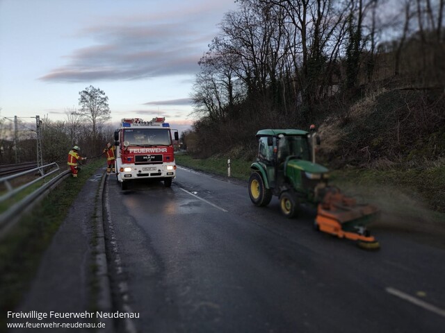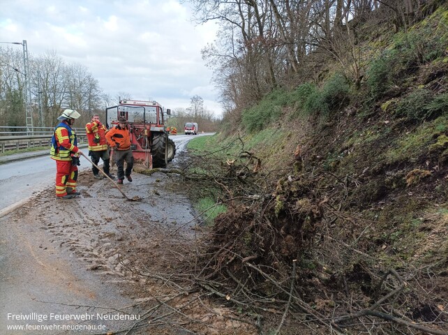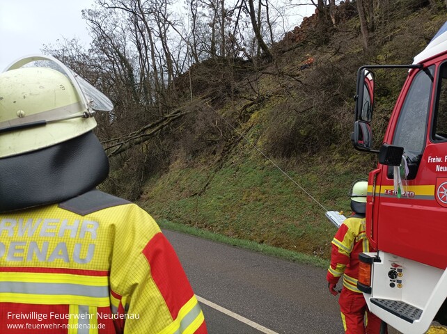 ![]() ![]() ![]() ![]() | Zum Windbruch wurde die Einsatzabteilung Neudenau auf die Landesstraße zwischen Neudenau und Herbolzheim alarmiert. Da der umgestürzte Baum in einer schwierigen Hanglage hing, wurde die EA Herbolzheim mit dem Mehrzweckzug zur Sicherung und Bergung des Baumes nachalarmiert. Während den Maßnahmen war die L1096 voll gesperrt. | |||