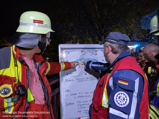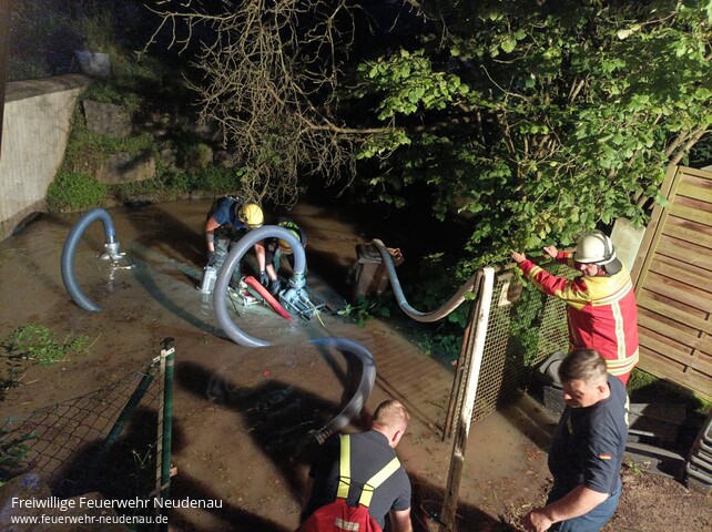 ![]() ![]() | Zu standardmäßigen Hochwasserschutzmaßnahmen wurden die Einsatzabteilungen Neudenau und herbolzheim nach Siglingen alarmiert. Bei der Erkundung wurde festgestellt, das es Überflutungen hinter der Hochwasserschutzwand gab. Mit den Schmutzwasserpumpen der Feuerwehr Neudenau konnten diese nicht ausreichend bekämpft werden, daher wurde im Einsatzablauf das THW Widdern mit weiteren Pumpen hinzualarmiert. Am frühen Morgen konnte der Einsatz, nachdem zusätzliche Pumpen der Abwasser-Infrastruktur in Betrieb genommen werden konnten, beendet werden. Einsatzende war um 04.15 Uhr. | ||||||