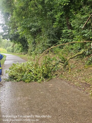 ![]() | Zufällig entdeckte die Besatzung des Gerätewagens-Logistik (GW-L2) der Einsatzabteilung Neudenau einen auf den Radweg ragenden Baum. Gemeinsam mit den Kameraden des THW Widdern, die zur Unterstützung beim Berufsfeuerwehrtag der Jugendfeuerwehr vor Ort war, wurde das Hindernis beseitigt. | |||